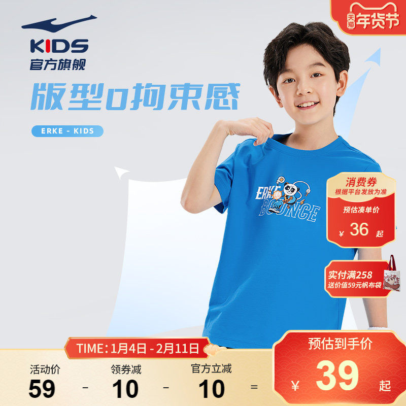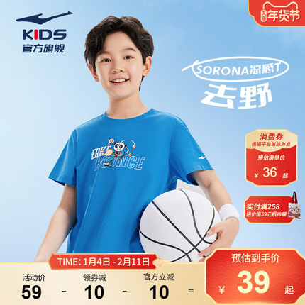 鸿星尔克童装男童短袖T恤夏季新款女童休闲汗衫儿童运动上衣透气