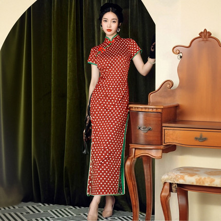 2025老上海旗袍长款女气质高端优雅修身复古民国风波点日常新款裙