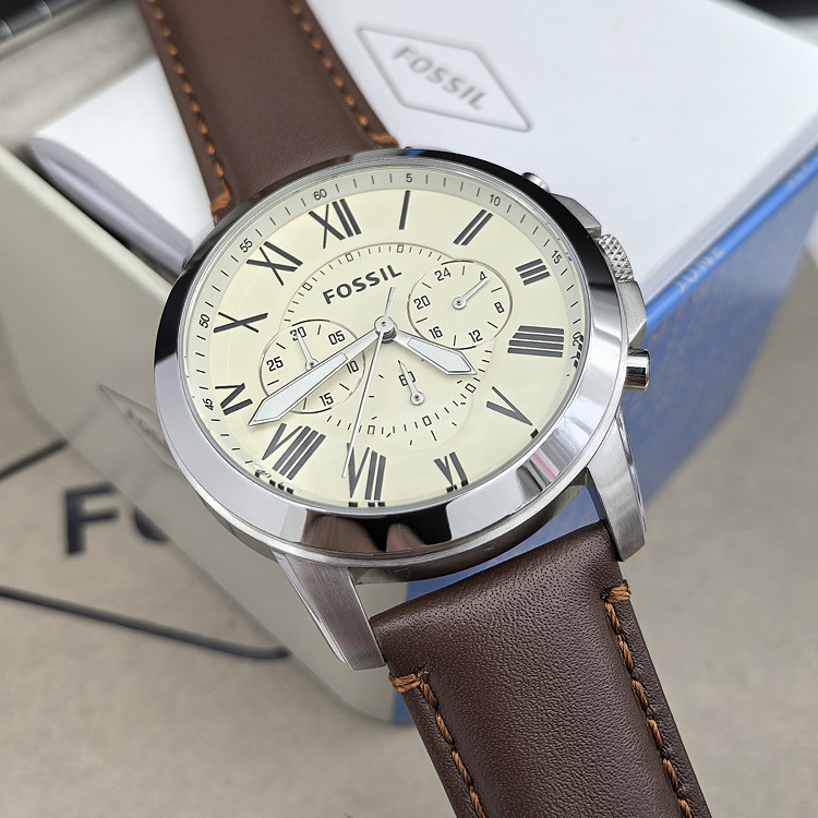 FOSSIL化石手表真皮表带轻奢潮流商务休闲石英表防水男表FS4735