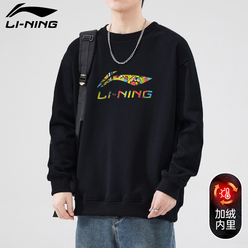 李宁卫衣男士加绒2026新款秋冬季圆领休闲潮流加厚套头衫运动上衣