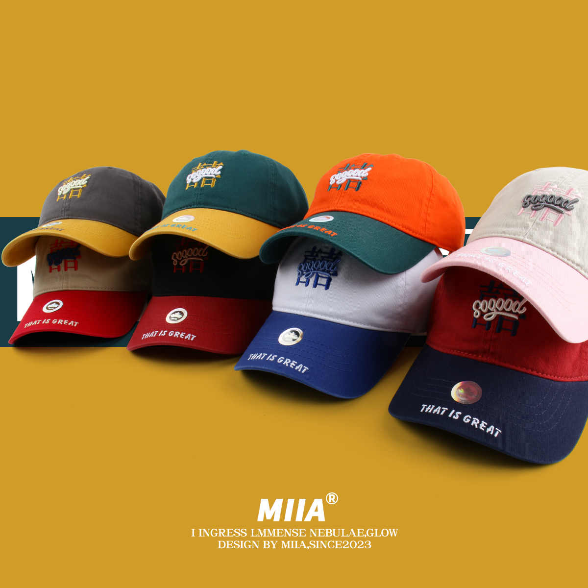 韩版撞色小众国潮囍字刺绣字母棒球帽子女百搭学生鸭舌帽男遮阳帽