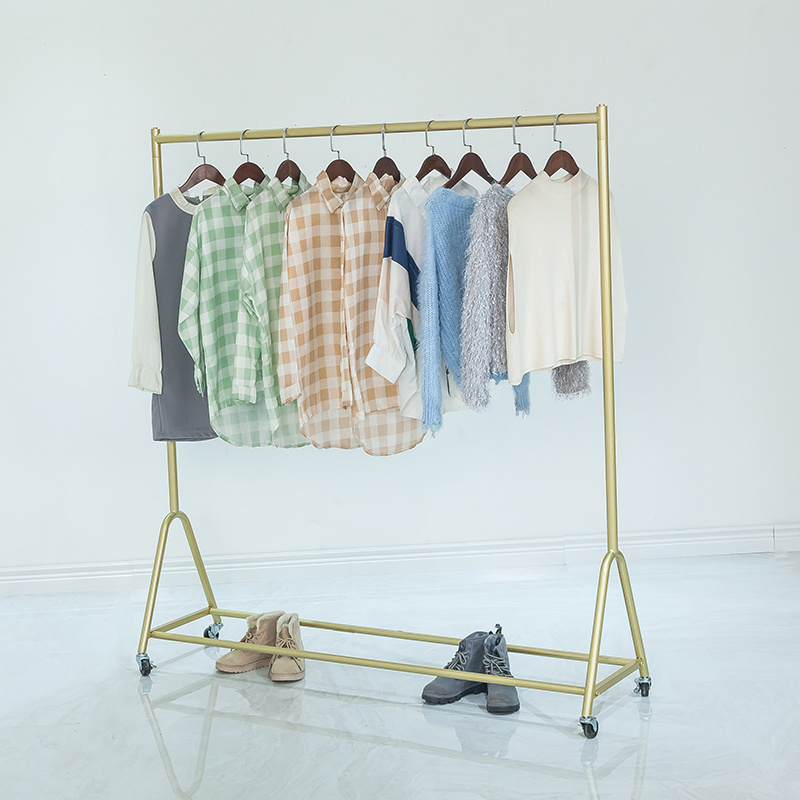 服装店展示架金色女装店货架落地式挂衣架子陈列架移动龙门架带轮