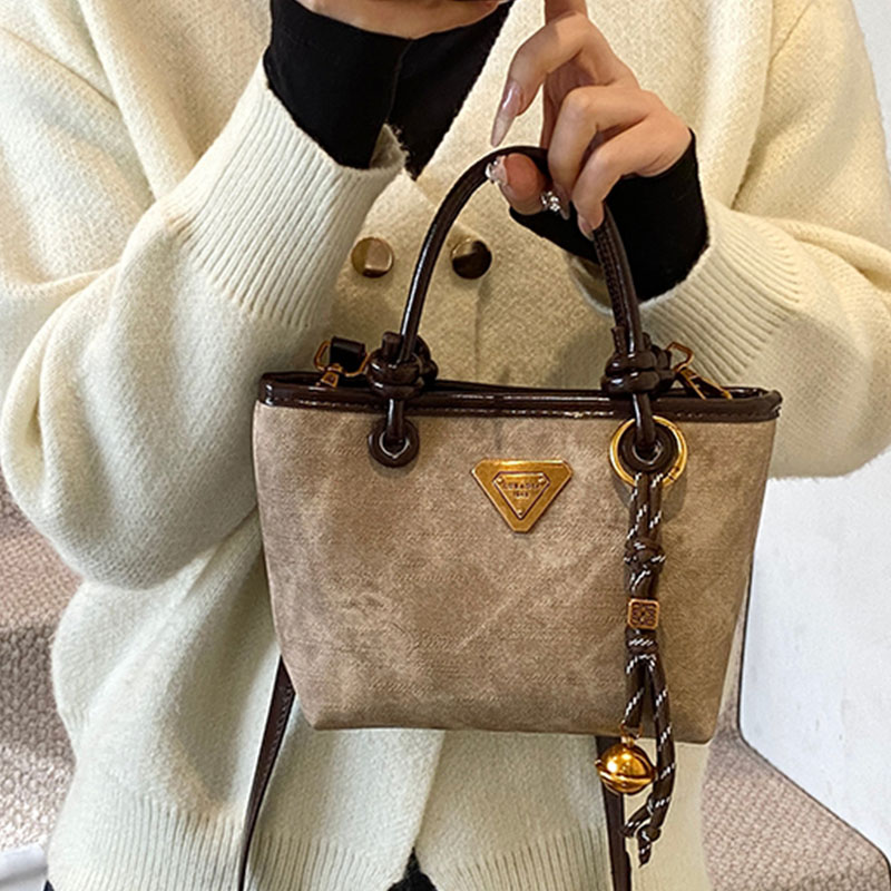 复古时尚油蜡皮手拎包韩版ins潮流高级感水桶包2025冬季单肩女包