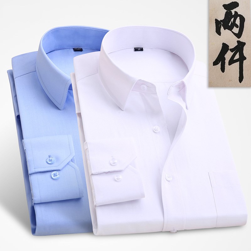 春秋季男士长袖衬衫修身青年商务职业正装棉加绒厚白工装衬衣上班