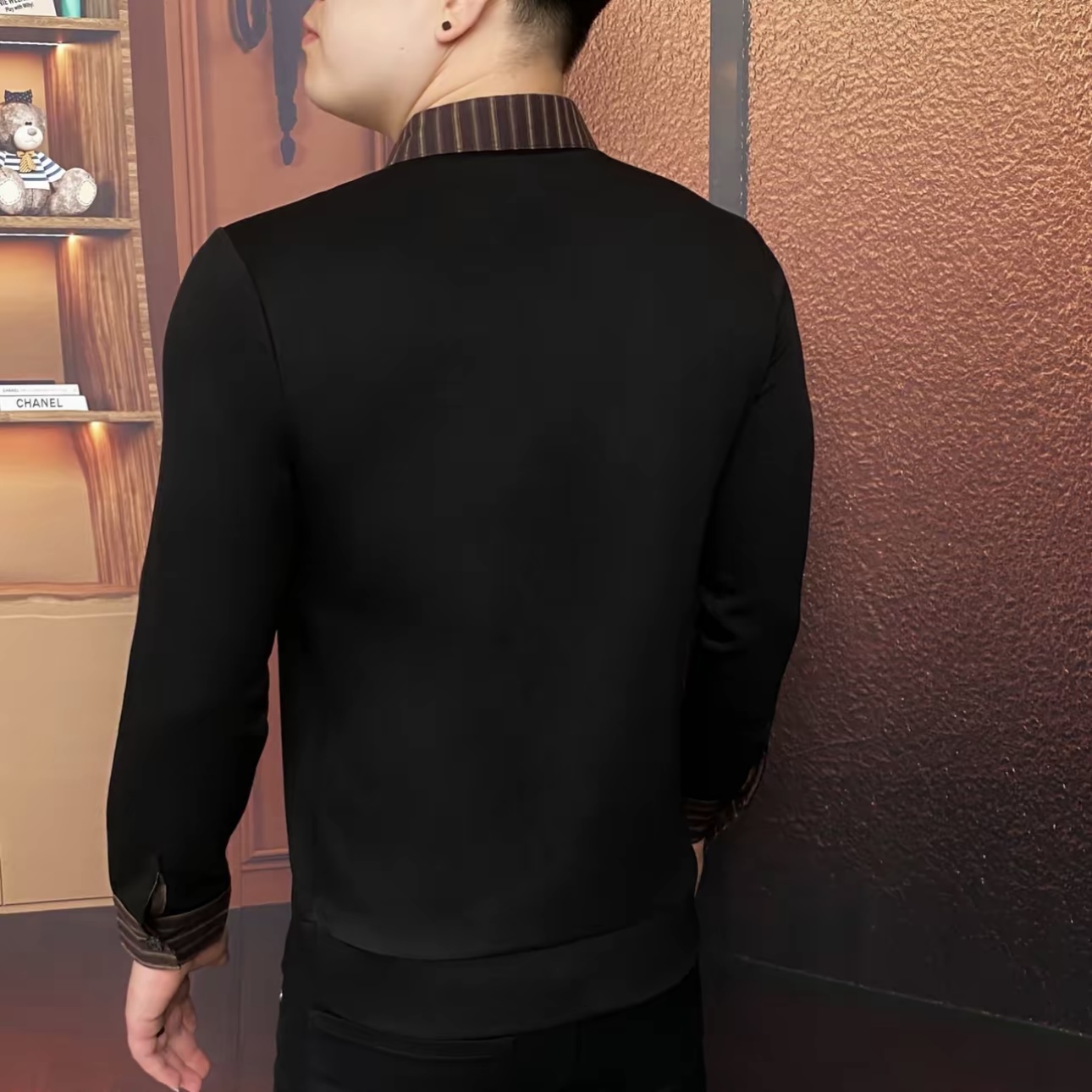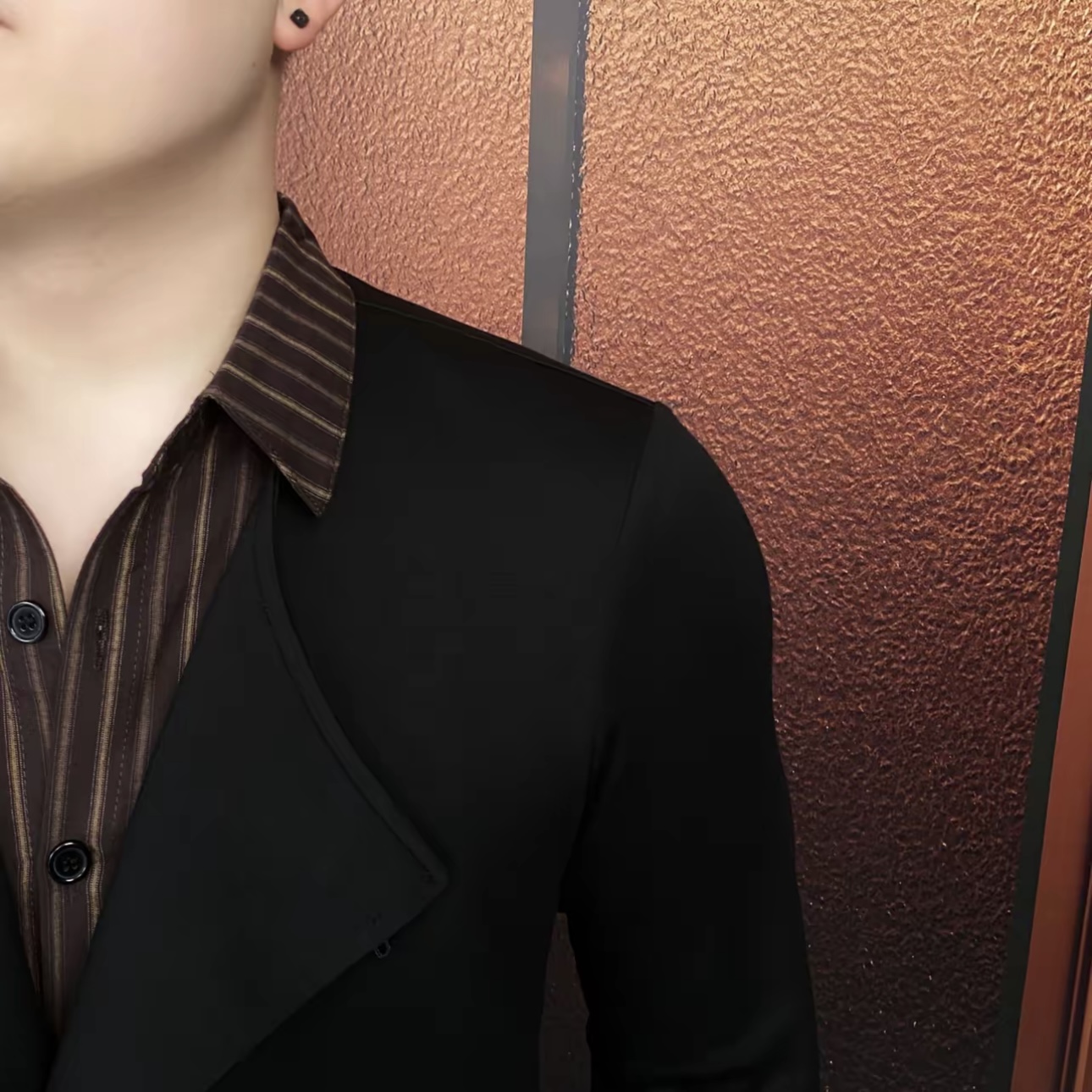 欧货秋季新款男士翻领假两件长袖衬衫时尚修身弹力型男衬衣上衣男