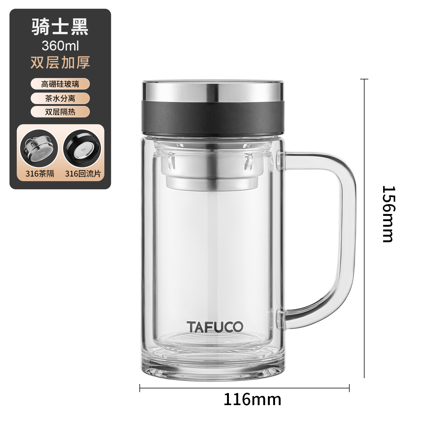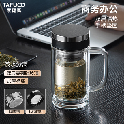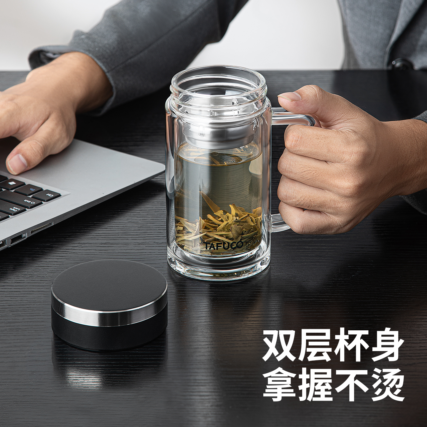 TAFUCO/泰福高家用便携双层隔热高档茶隔玻璃茶杯大容量男办公室