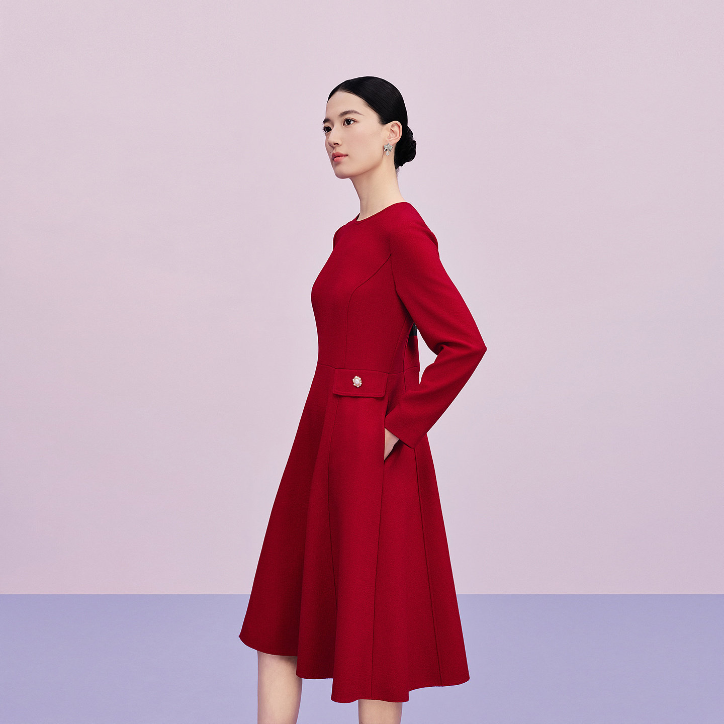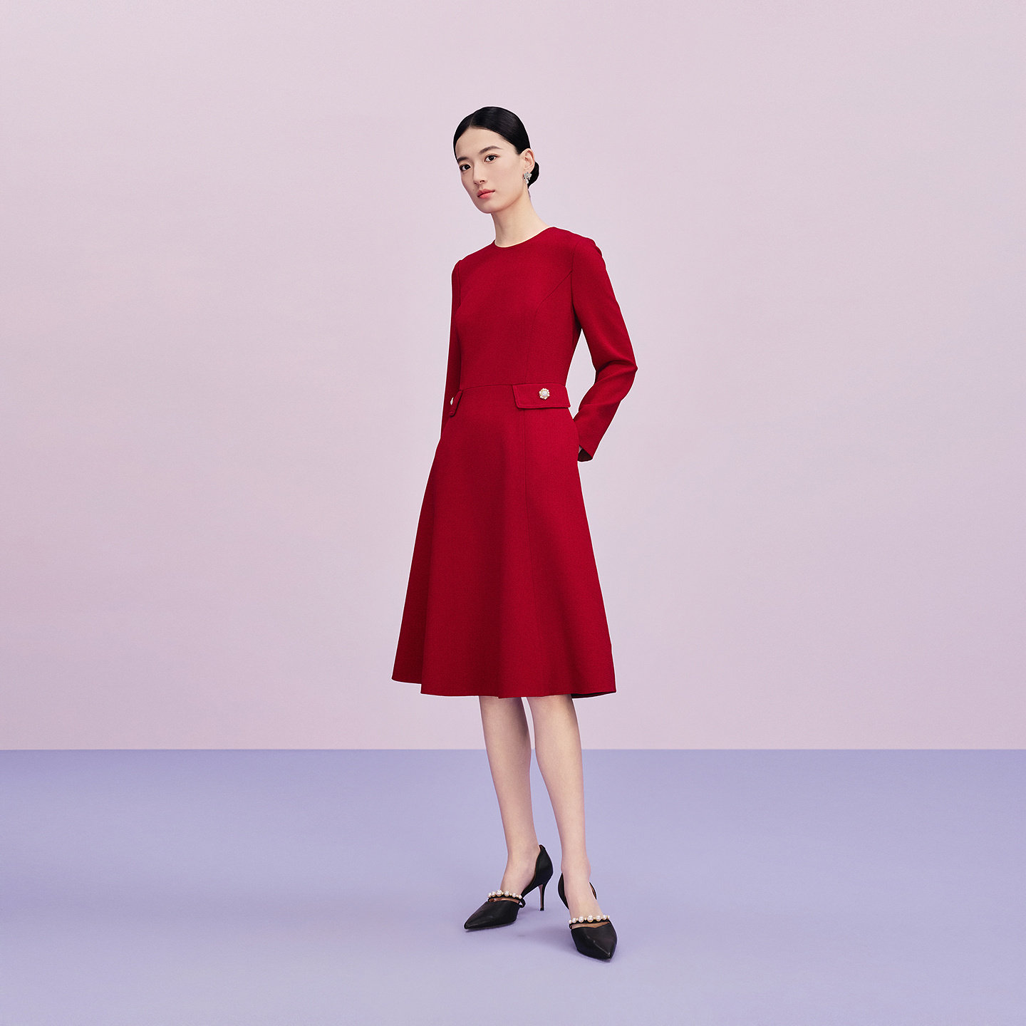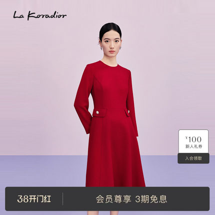 【商场同款】Lakoradior拉珂蒂减龄女新款气质红色通勤连衣裙