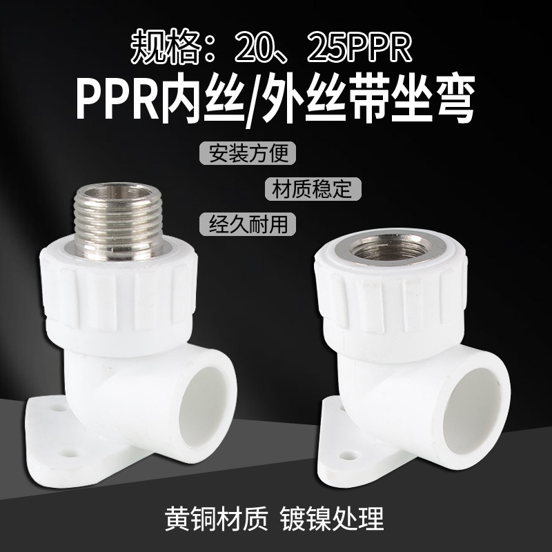 PPR25转4分带座内丝弯头20变1/2外丝牙座弯明装固定内外螺纹接头