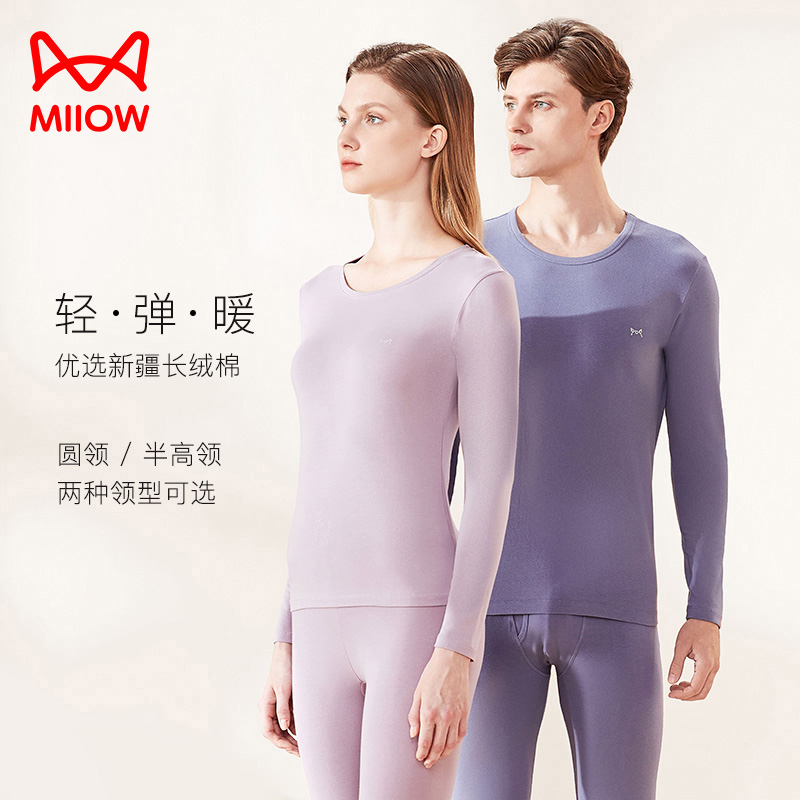 猫人秋衣秋裤男女士春秋打底棉毛衫线衣线裤薄款保暖内衣套装冬季