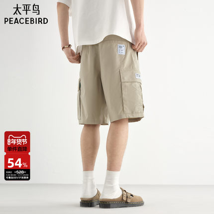 太平鸟男装休闲裤25夏新款卡其运动五分裤户外工装直筒中短裤潮