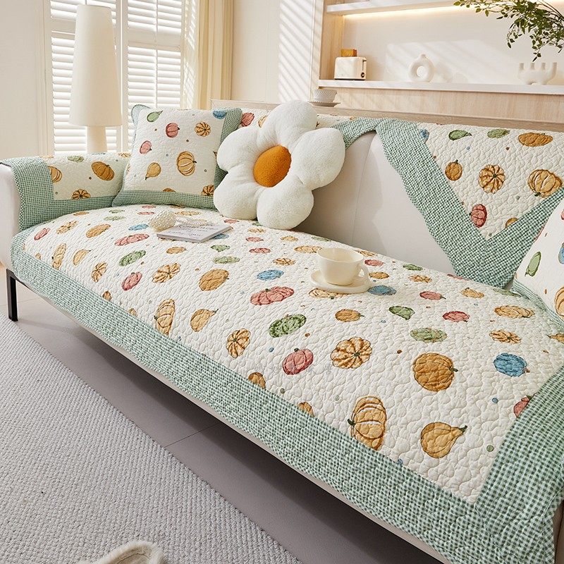 新款简约全棉斜纹防滑纯棉夹棉四季通用布艺沙发垫套罩盖巾可机洗
