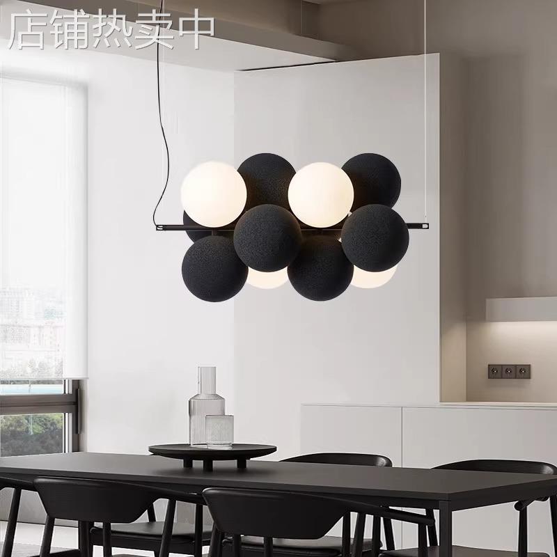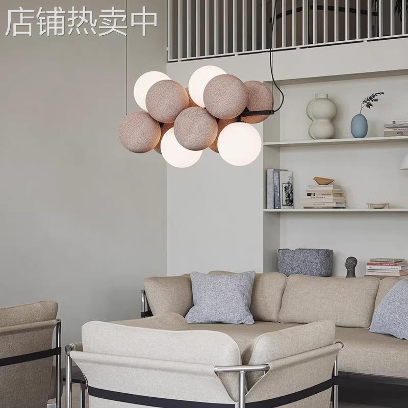 侘寂风餐厅吊灯设计师款创意绒布球魔豆泡泡客厅北欧吧台卧室吊灯