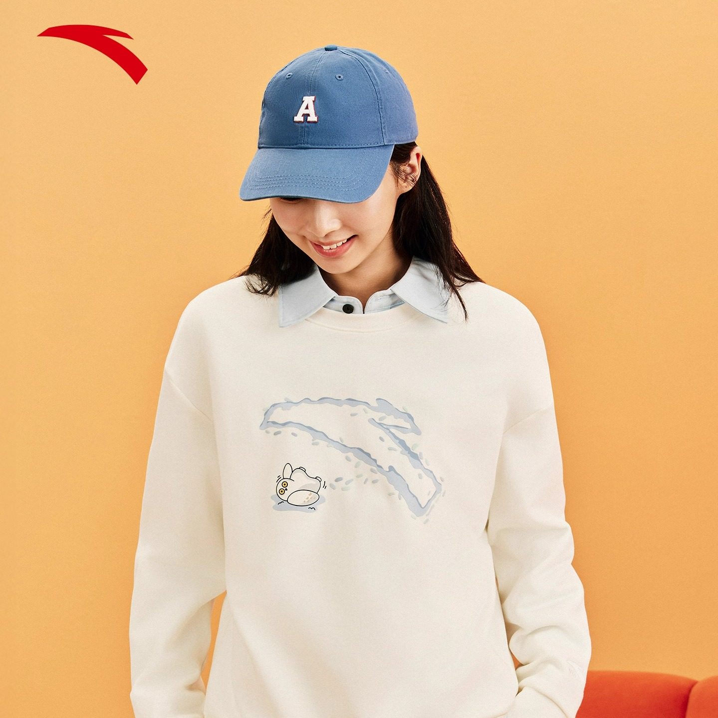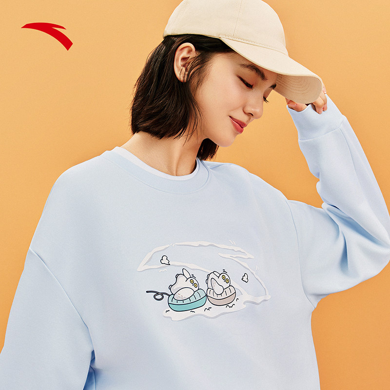 安踏趣味套头衫卫衣女款秋冬新款加绒保暖休闲宽松多巴胺运动上衣