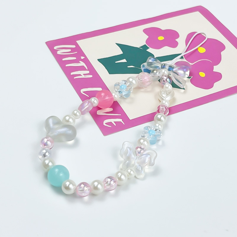 手机挂绳ins清新可爱手机链蓝色水晶蝴蝶结ccd通用相机链条钥匙扣壳挂绳diy透明蝴蝶结磨砂爱心挂件挂饰