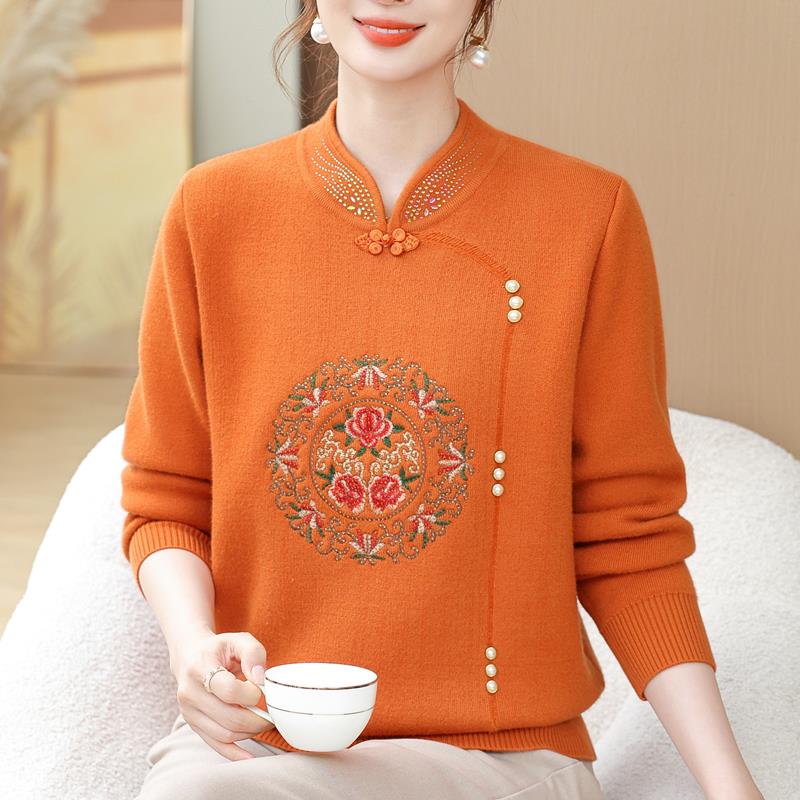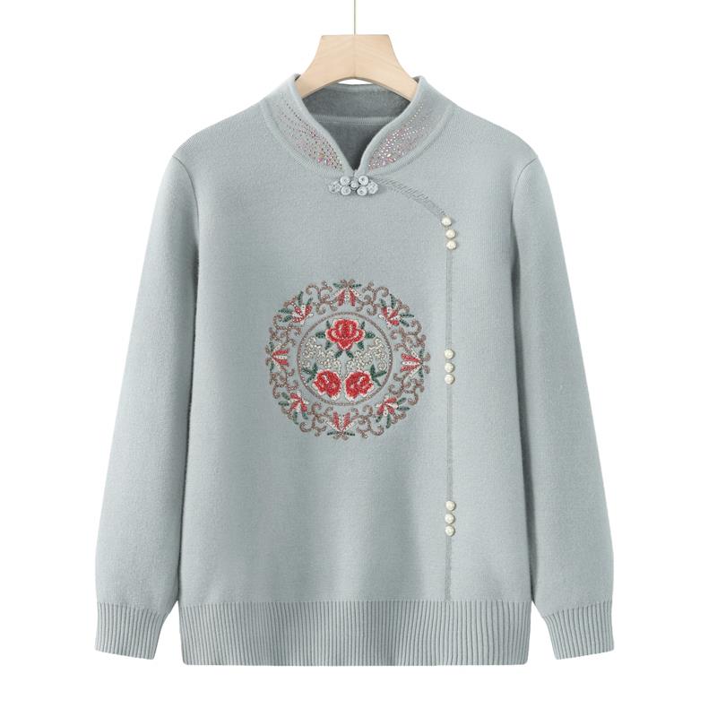 加肥加大码洋气妈妈冬季加绒加厚新中式毛衣中老年一体绒打底衫女