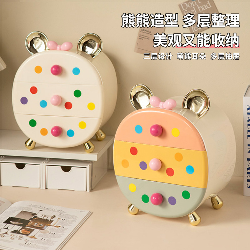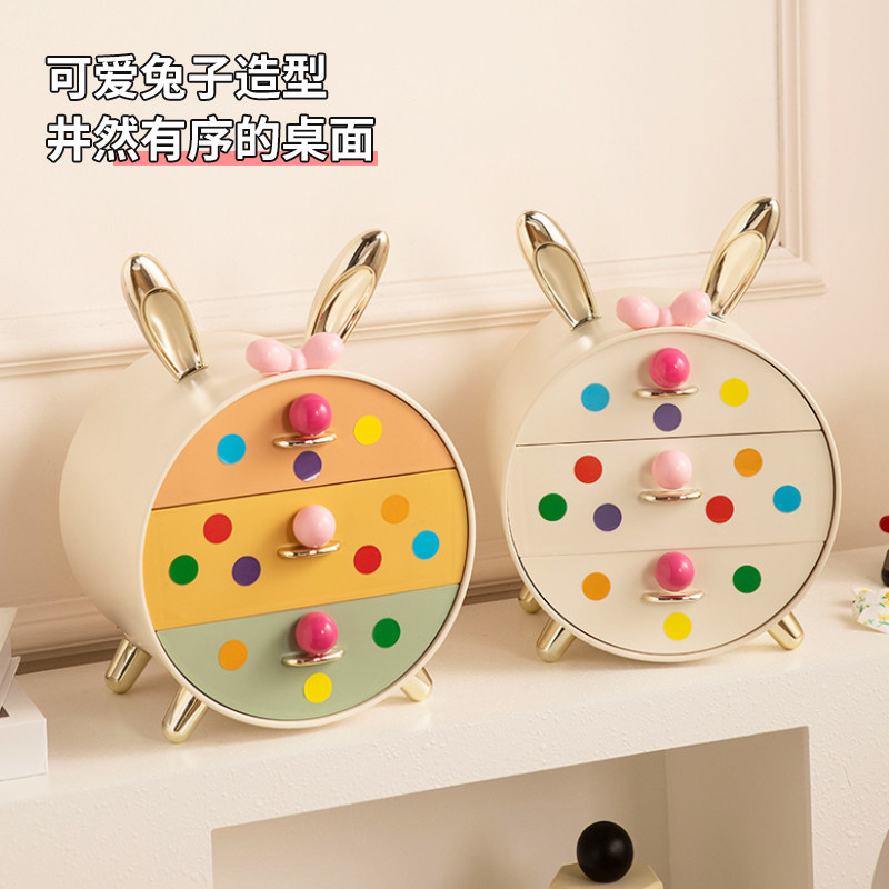 收纳盒桌面卡通抽屉式办公室书桌整理盒高级感化妆品储物杂物置架