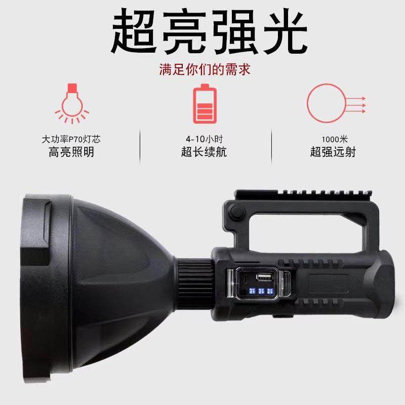 跨境探照灯户外强光多功能照明LED远射防水USB充电手提式手电筒
