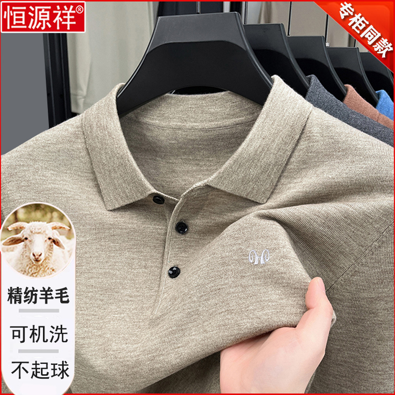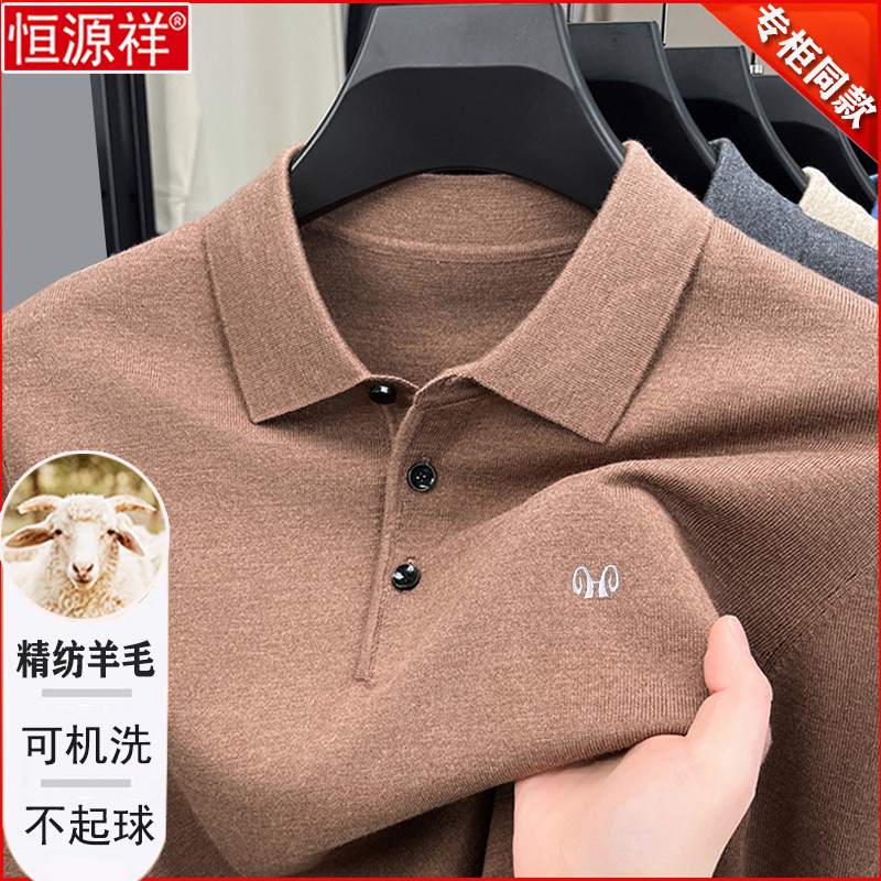 恒源祥男士羊毛衫春季翻领薄款针织打底衫纯色羊绒衫套头爸爸毛衣