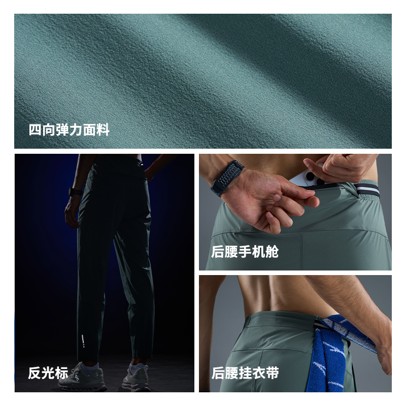 内道收纳跑步长裤四向弹力反光标秋冬新款男后腰口袋运动训练长裤