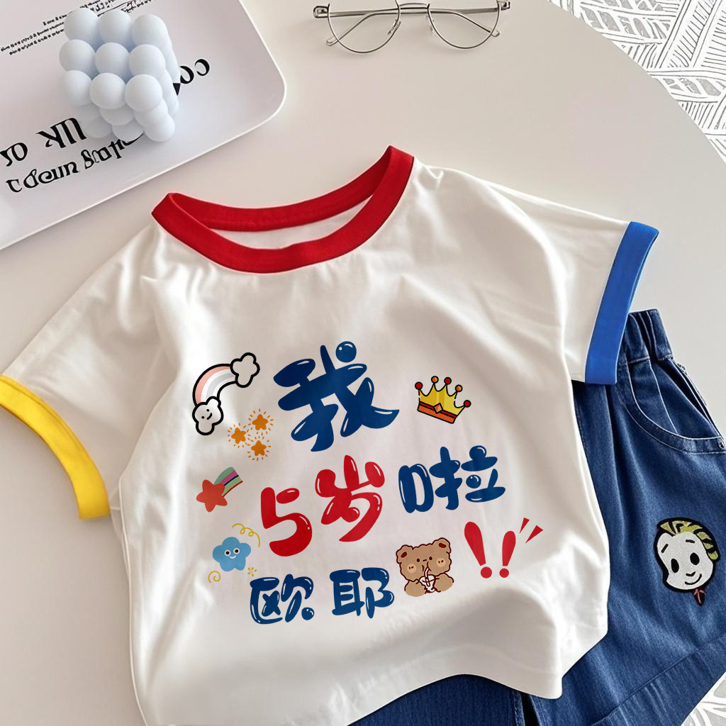 1-8生日周岁~儿童纯棉短袖T恤2025夏装男女童薄款上衣中小童半袖