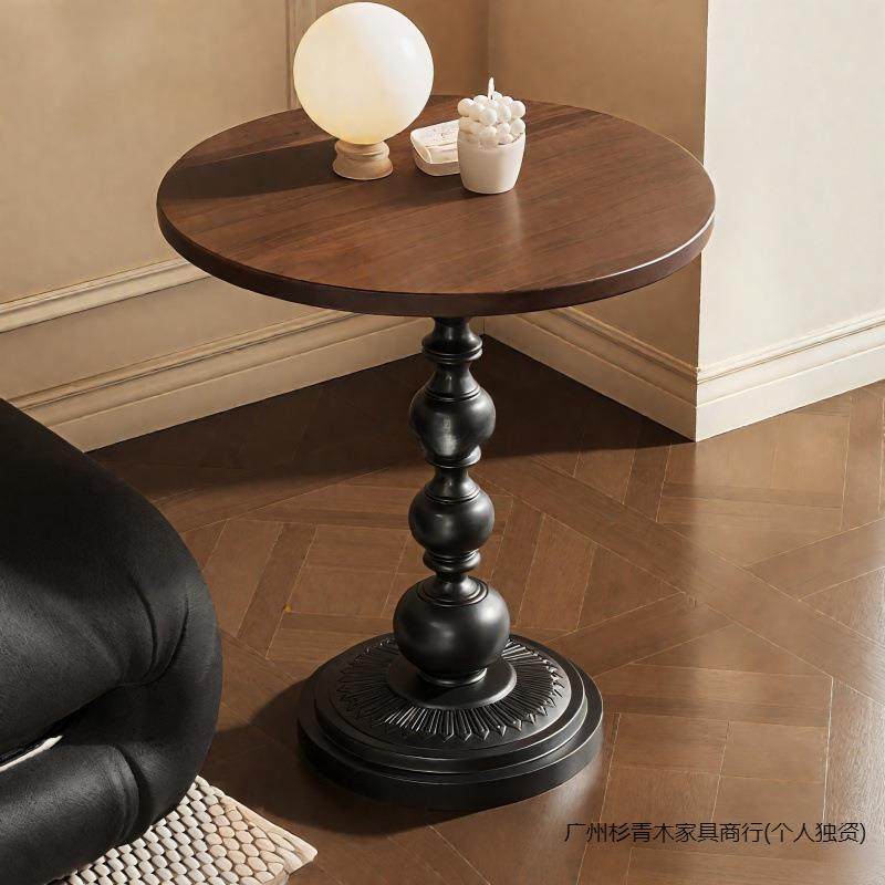 小圆桌茶几沙边发中古风复古床头置物桌几网MJ-89072红小桌艺子铁