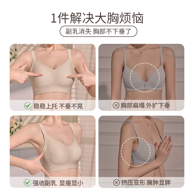 无痕内衣女薄款大胸显小无钢圈文胸提拉收副乳防下垂大码美背胸罩