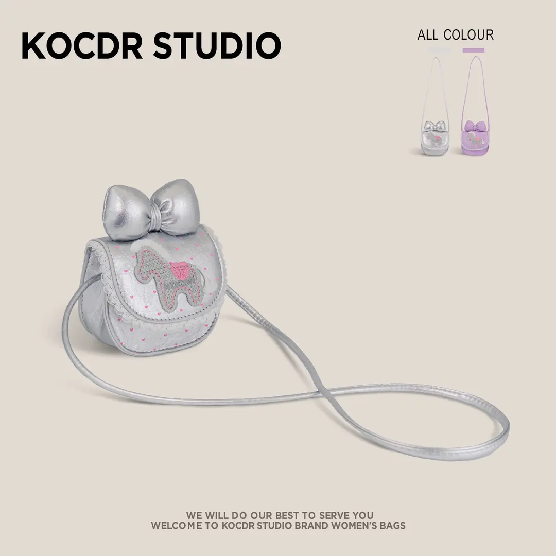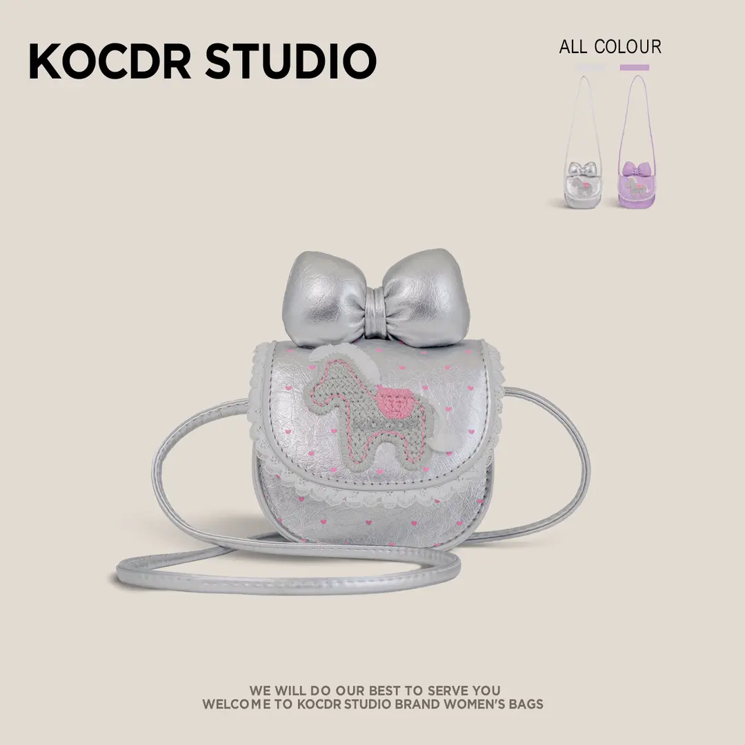 2026新款女童可爱斜挎包卡通蝴蝶结小马小香风精致女孩蕾丝单肩包