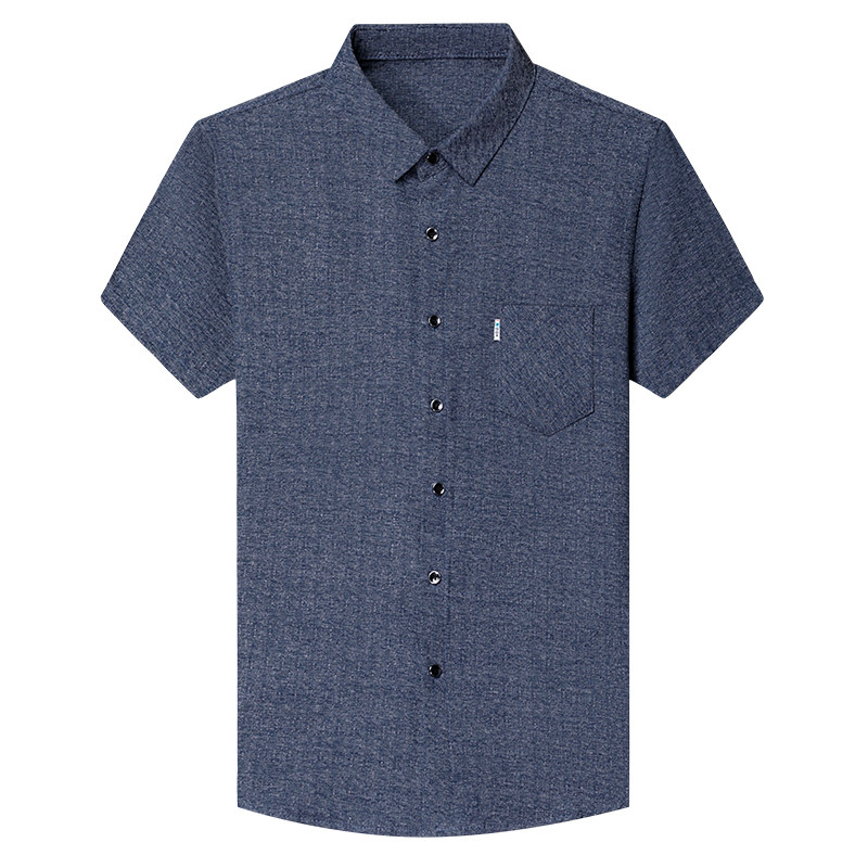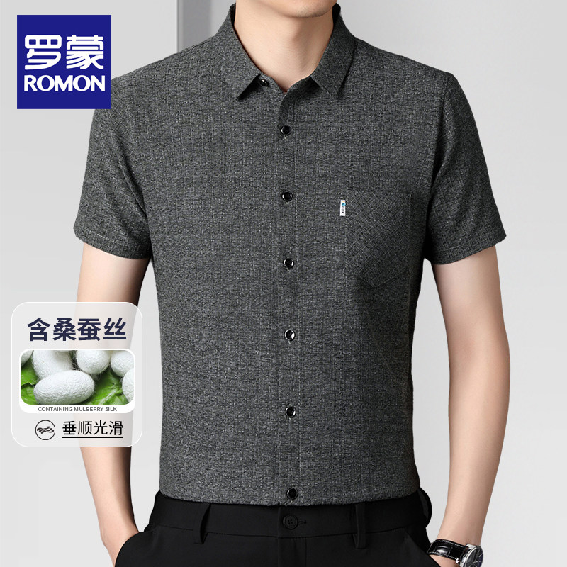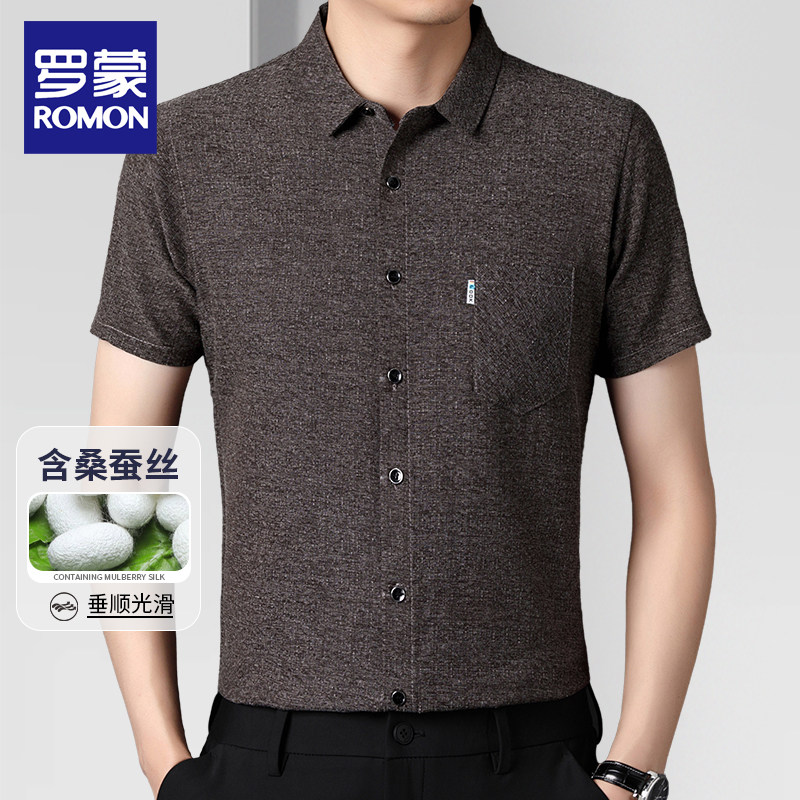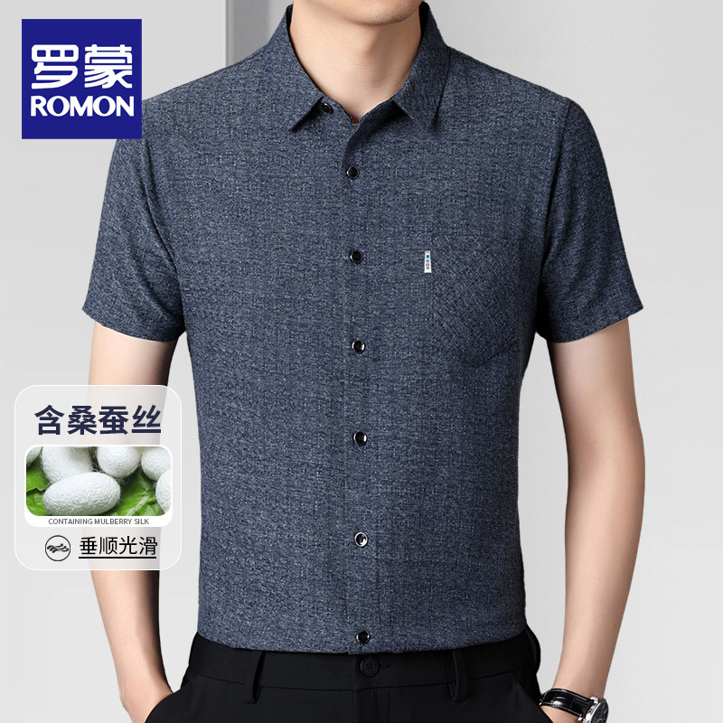 罗蒙夏季短袖衬衫中年男士含桑蚕丝衬衣商务休闲亚麻免烫爸爸上衣