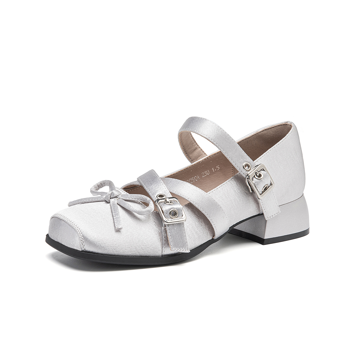 大东粗跟玛丽珍女鞋2025新款夏季绝美小高跟单鞋女蝴蝶结芭蕾舞鞋