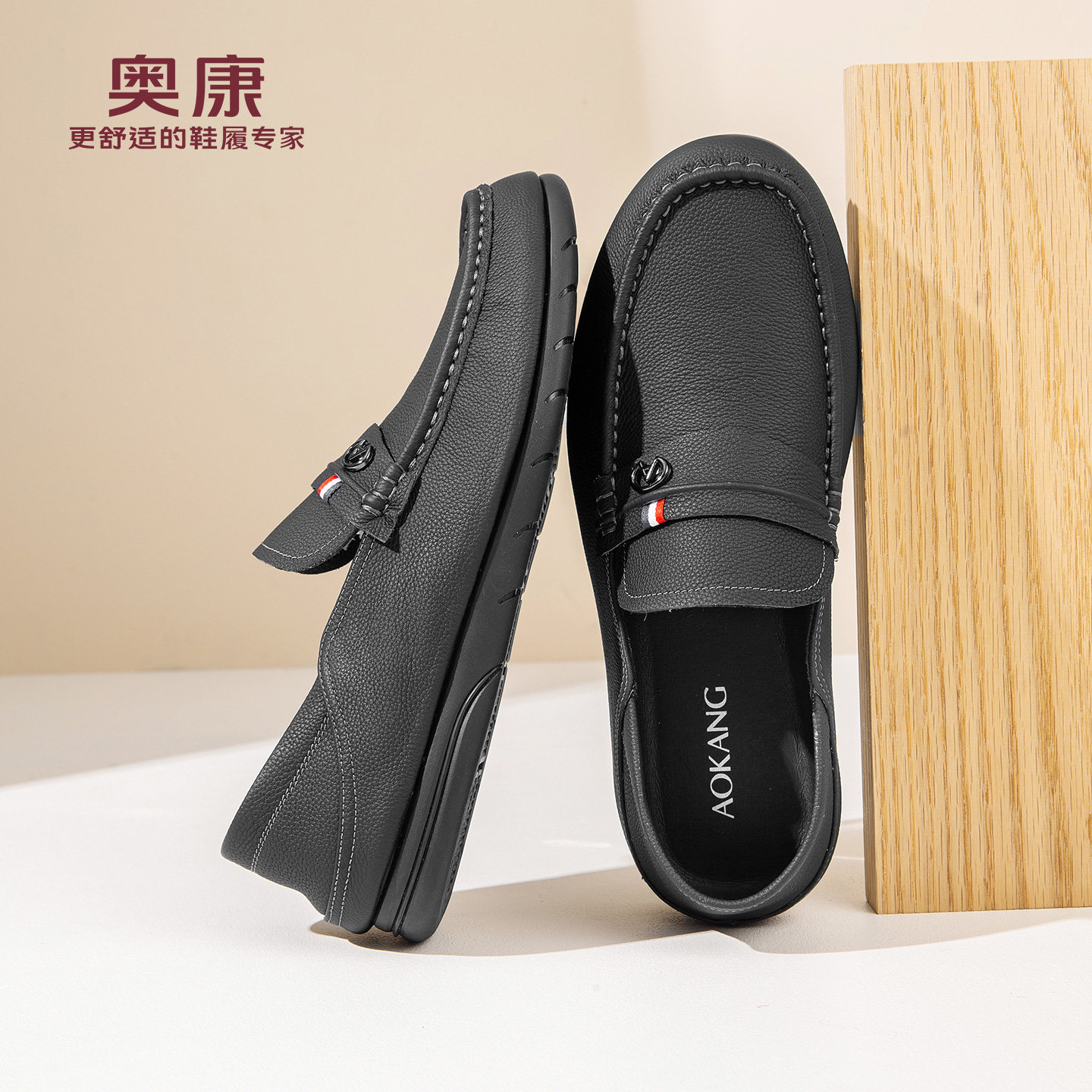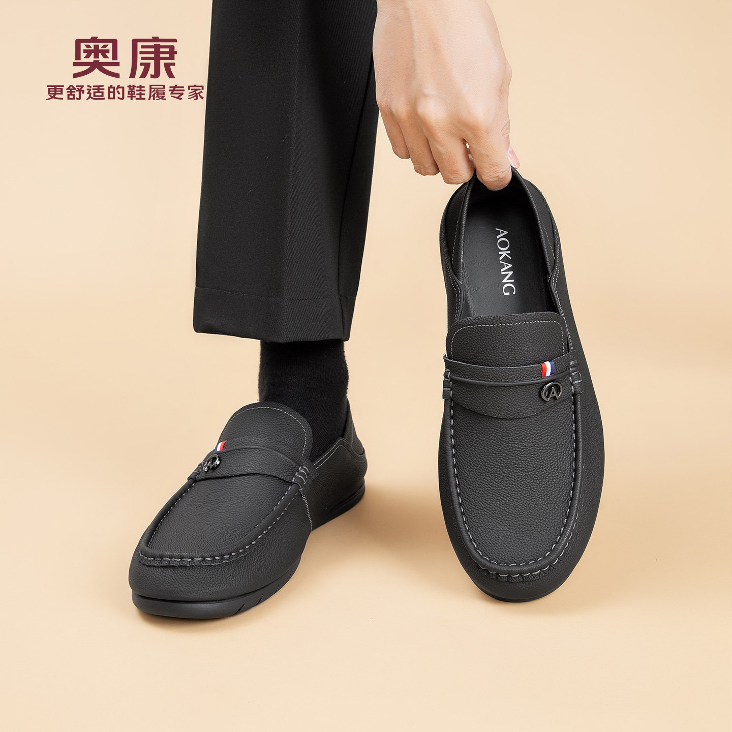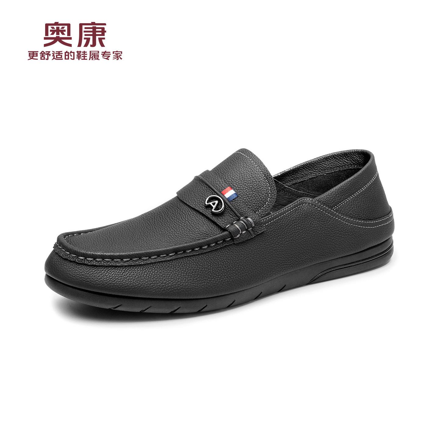 奥康男鞋春季新款英伦风羊皮软底商务透气休闲男士一脚蹬豆豆鞋