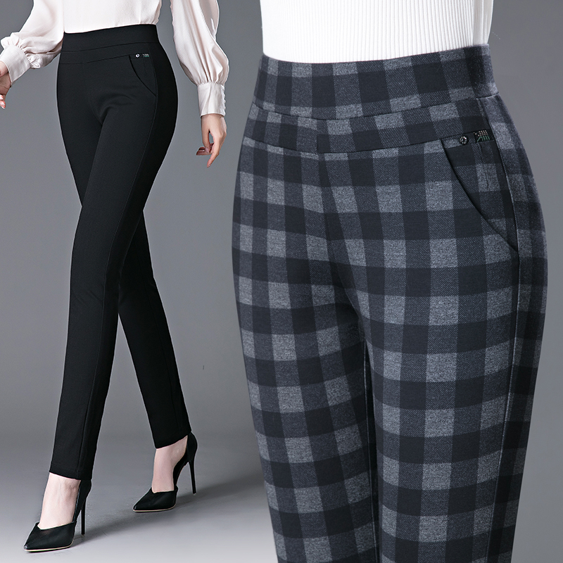 妈妈休闲长裤女秋冬加厚加绒宽松中老年休闲直筒裤弹力高腰裤显瘦