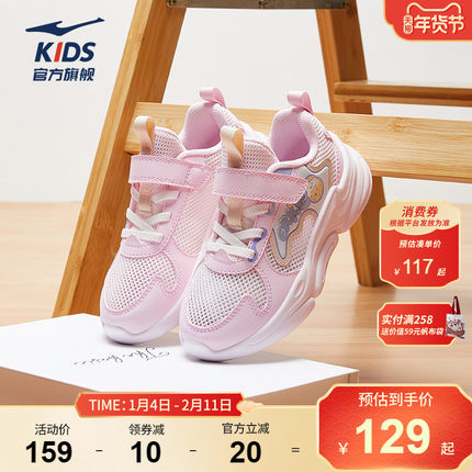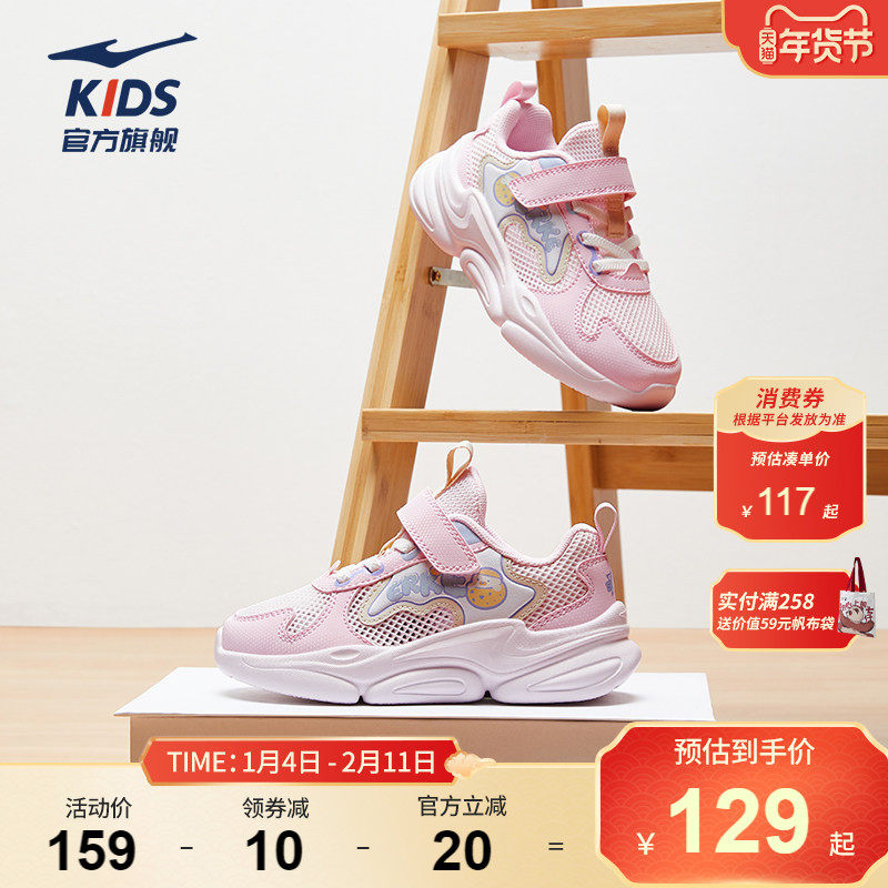 泡芙鸿星尔克童鞋女童透气运动鞋