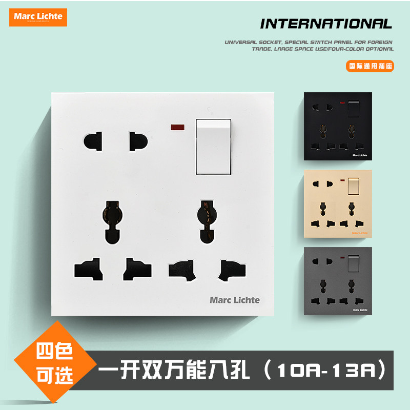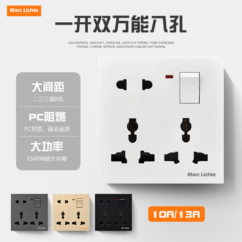86型多功能国际通用墙壁电源10安一开八孔16A插座面板带开关家用