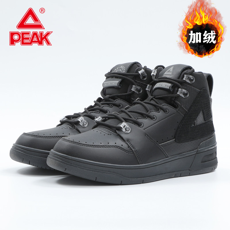 匹克态极910板鞋男高帮加绒男鞋冬季防滑加厚皮面防水运动鞋男
