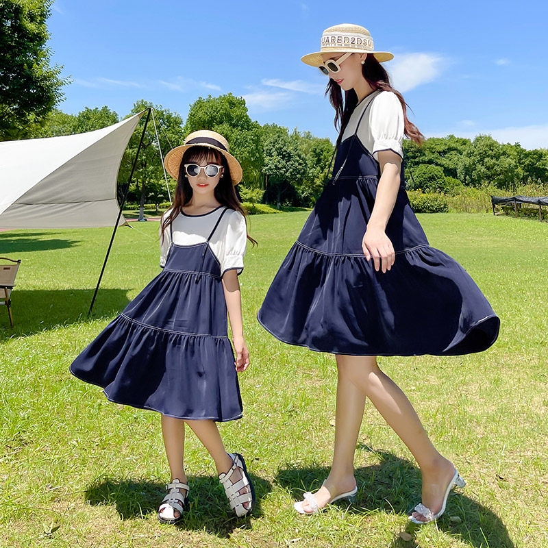 高端亲子装2023新款夏季母女装雪纺连衣裙假两件洋气韩版夏装裙子