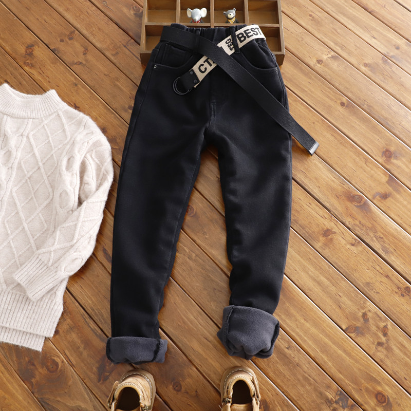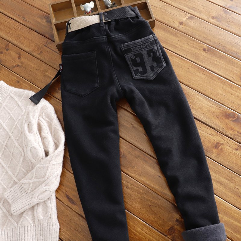 男童一体绒牛仔裤儿童冬款加绒加厚长裤中大童牛仔修身裤潮童裤子