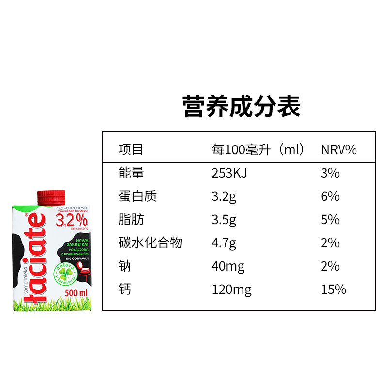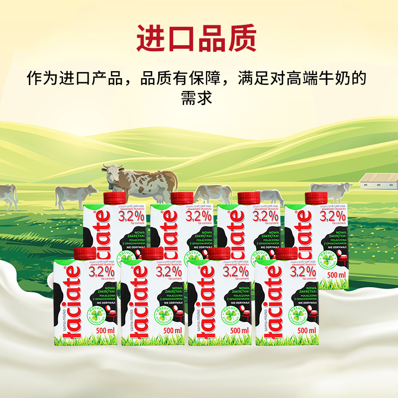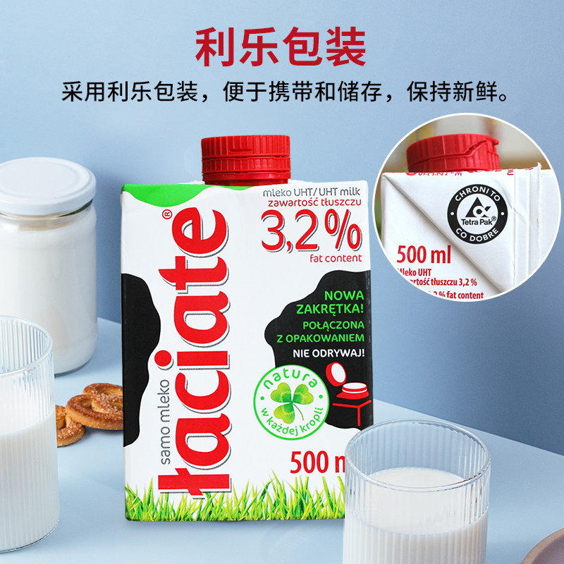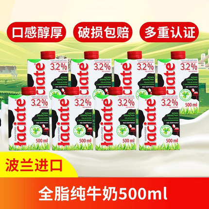 Laciate波兰进口纯牛奶整箱全脂牛奶家庭早餐囤货500ml/盒装