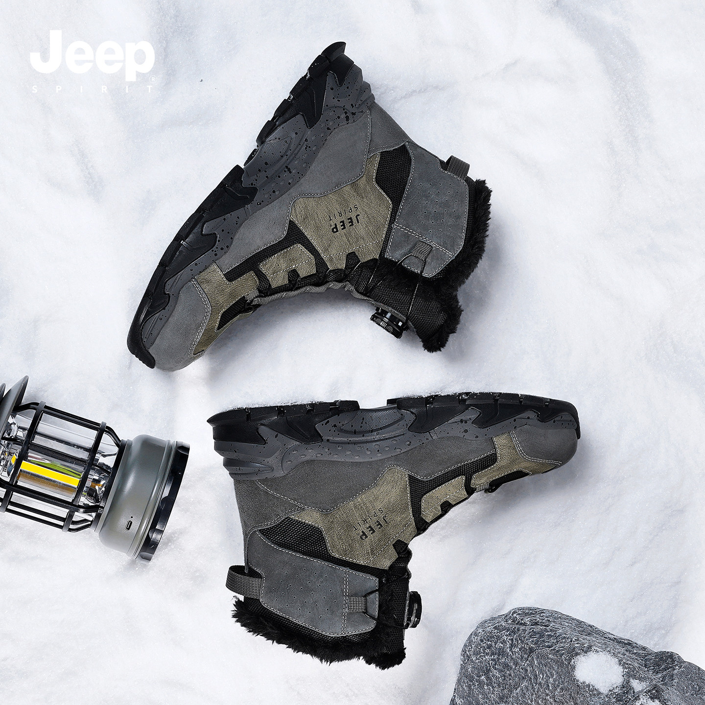 Jeep吉普男鞋新款冬季男士雪地靴厚底棉鞋高帮男款大棉加绒鞋子男