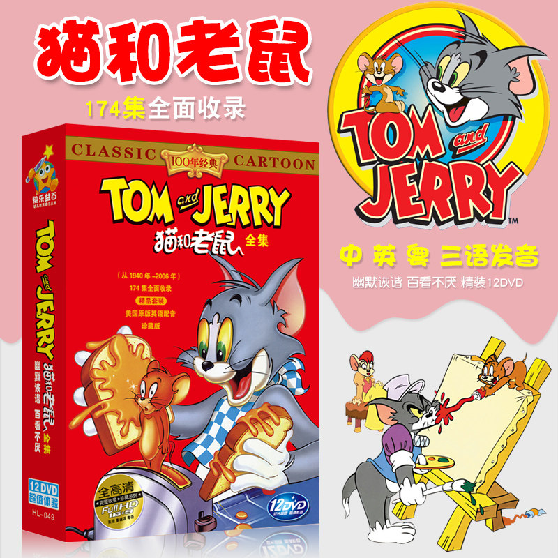 幼儿童经典卡通猫和老鼠12DVD全集迪士尼动画片光盘中英双语碟片