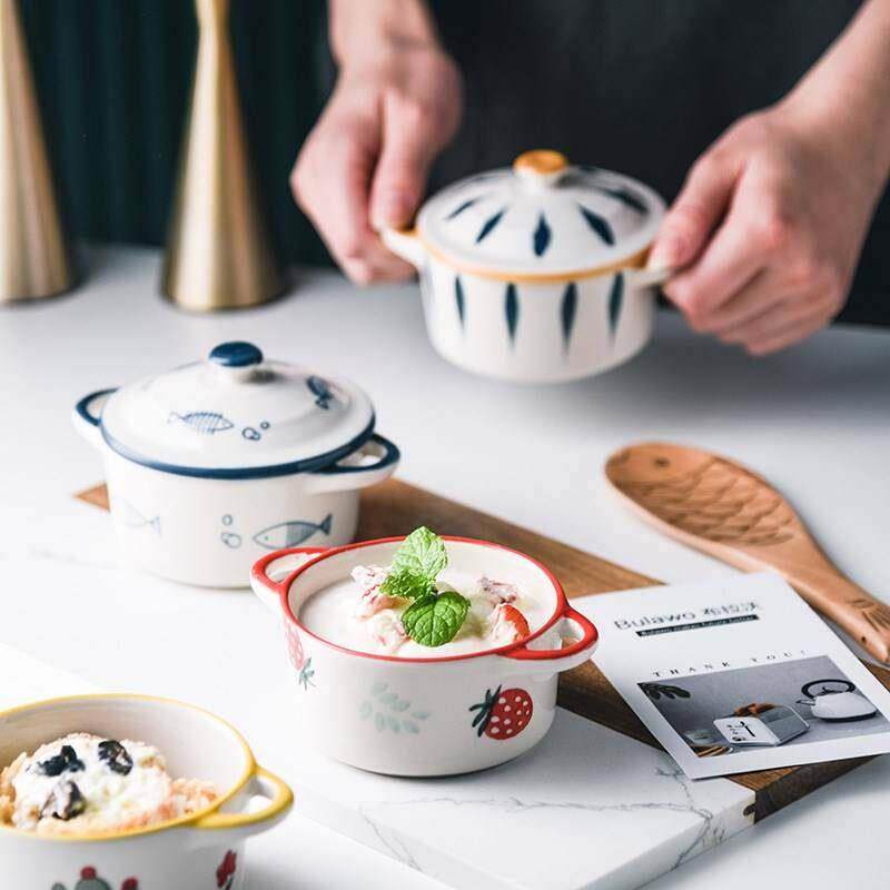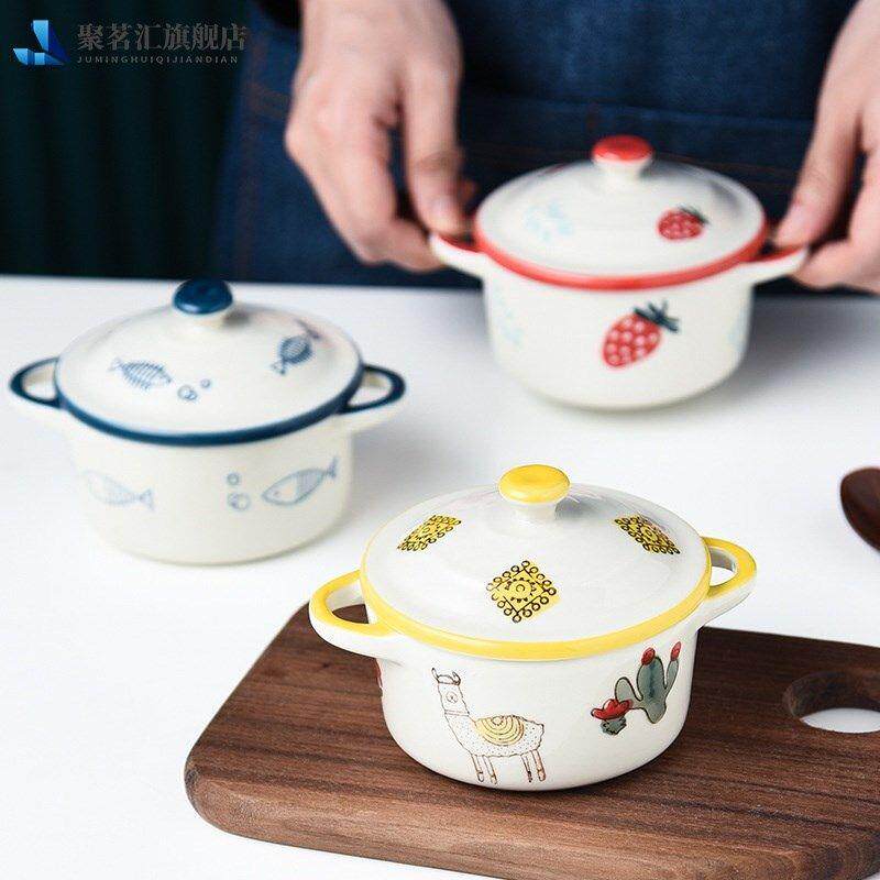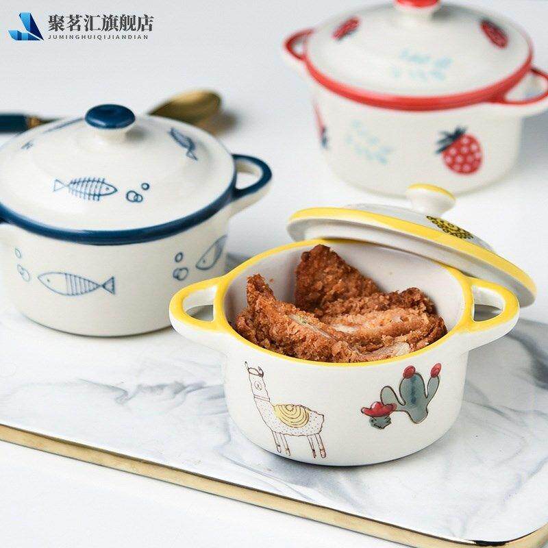 宝宝蒸蛋碗带盖陶瓷双耳碗婴儿辅食蒸碗家用蒸水蛋专用蒸鸡蛋羹碗