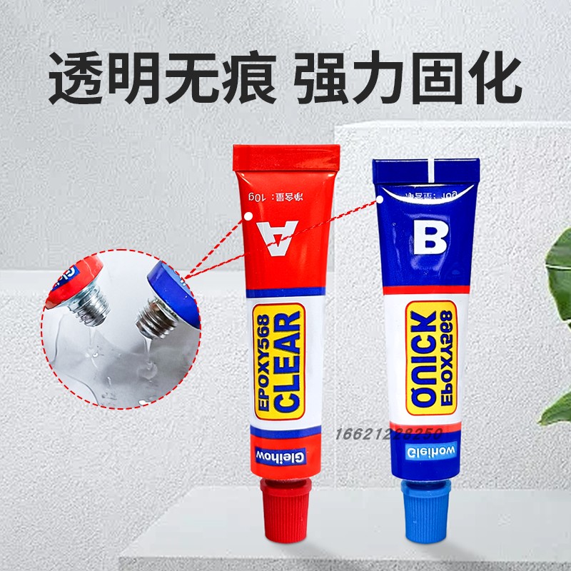 哥俩好透明强力环氧树脂AB胶水568透明环氧ab胶快干粘水晶玉器玻璃塑料亚克力陶瓷家庭用强力透明万能胶20g