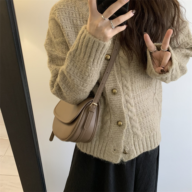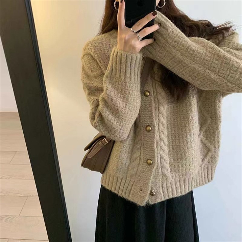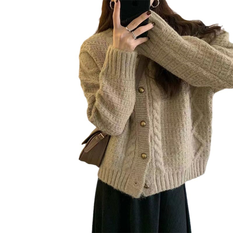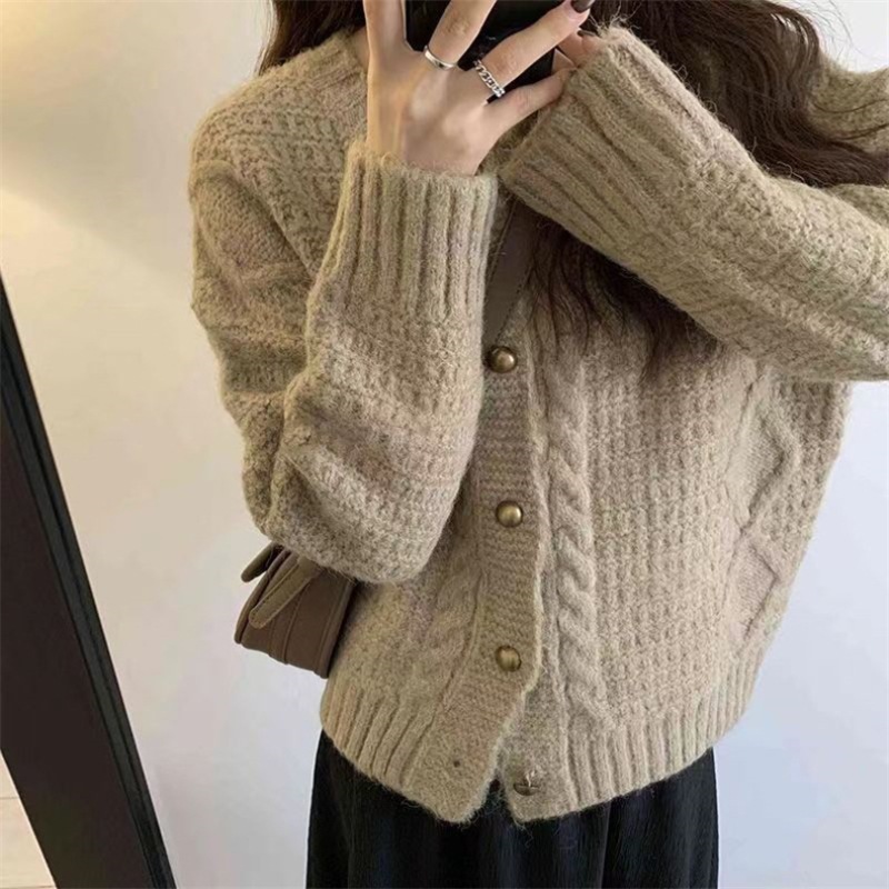毛衣女小开衫外套2023新款圆领麻花温柔风女士针织开衫上衣女
