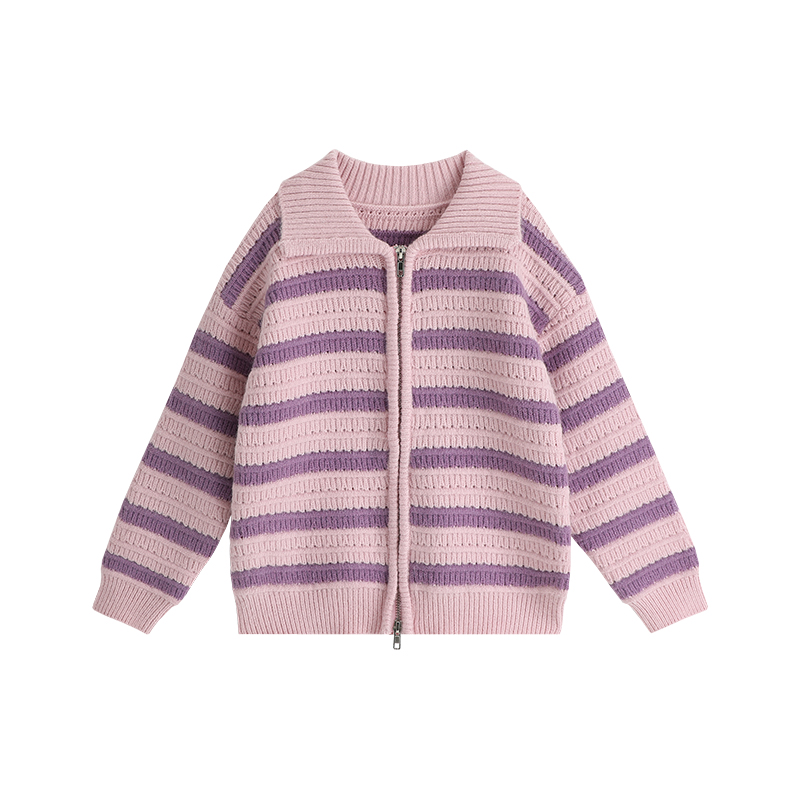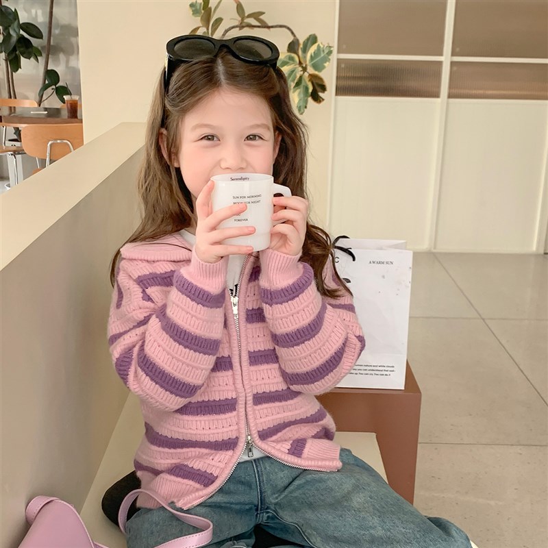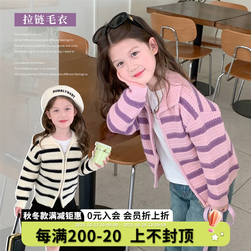 童装女童秋装毛衣2023春秋季新款儿童条纹针织打底衫宝宝开衫外套