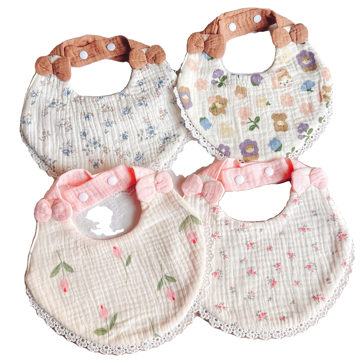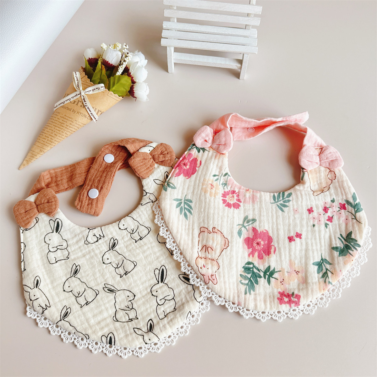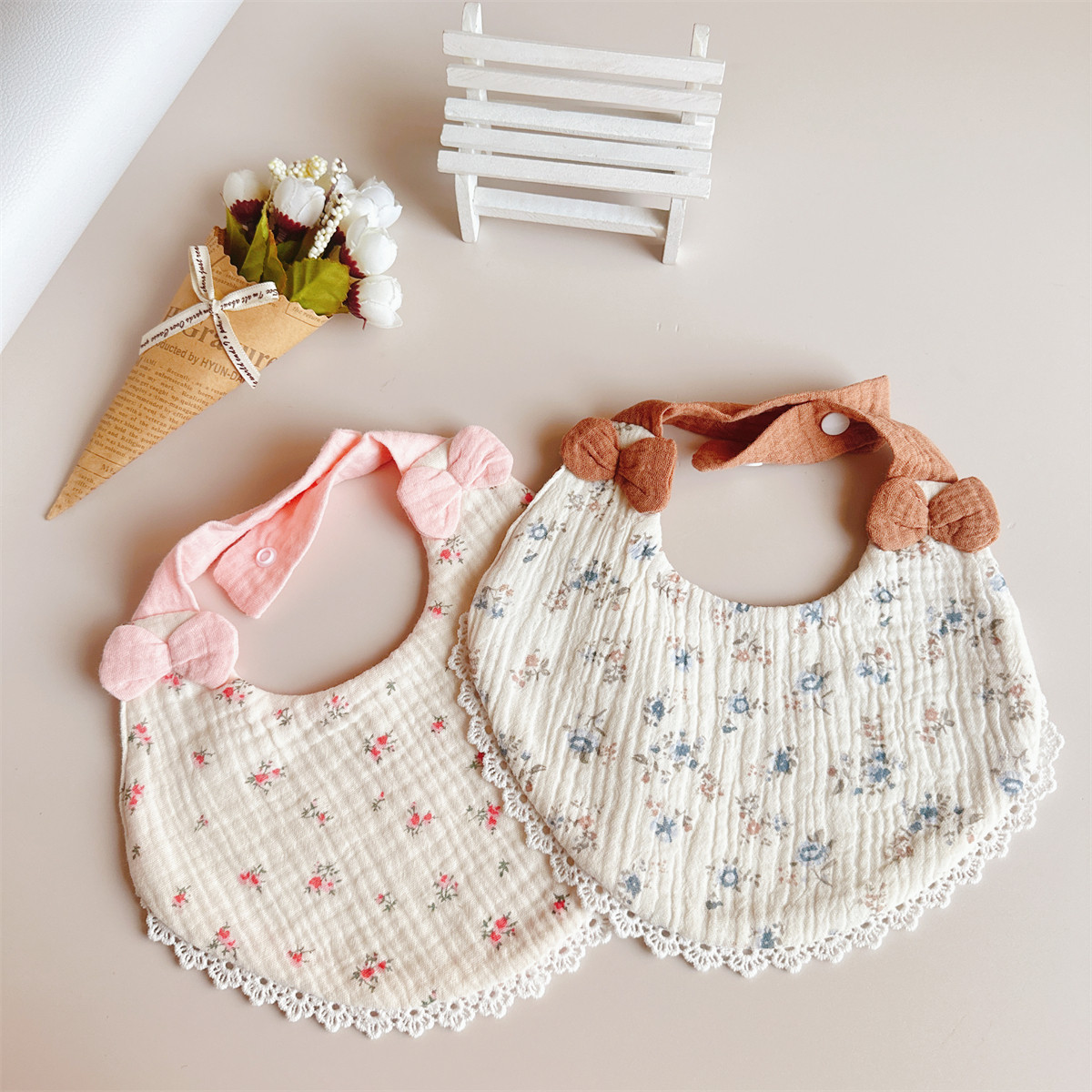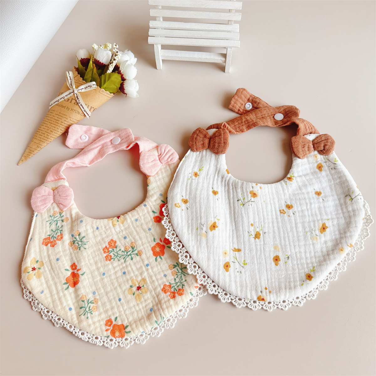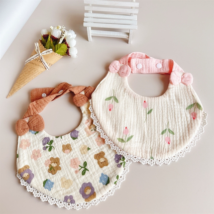 韩版ins风纯棉纱布婴儿口水巾宝宝围嘴公主风花边口水兜