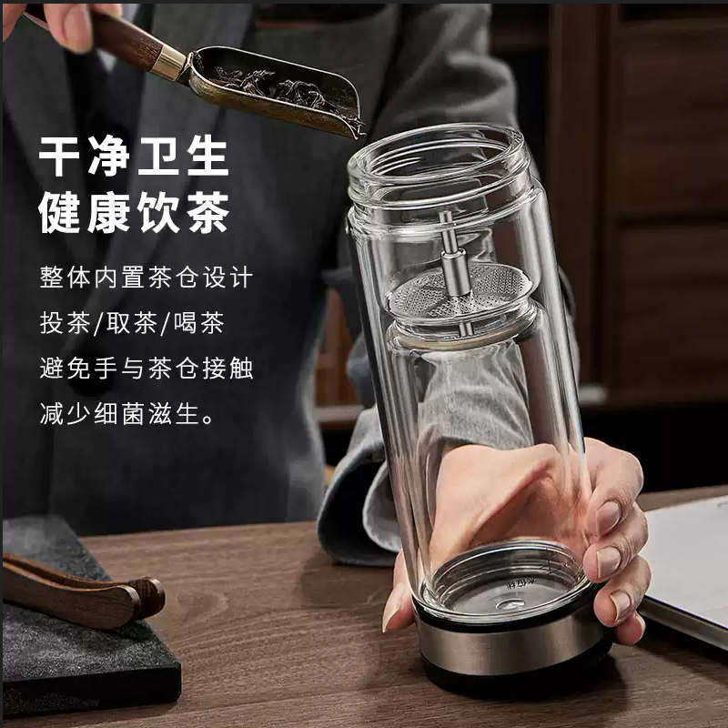 茶之恋臻钛版茶水分离杯双层玻璃杯男士防烫高档纯钛便携泡茶水杯