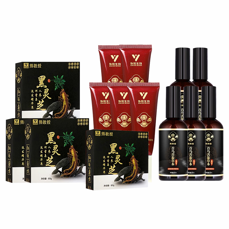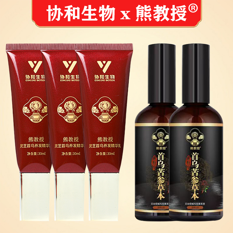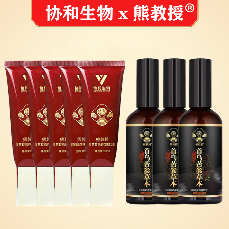 熊教授黑灵芝首乌养发精华乳苦参草本液白植物头发官方发黑旗舰店