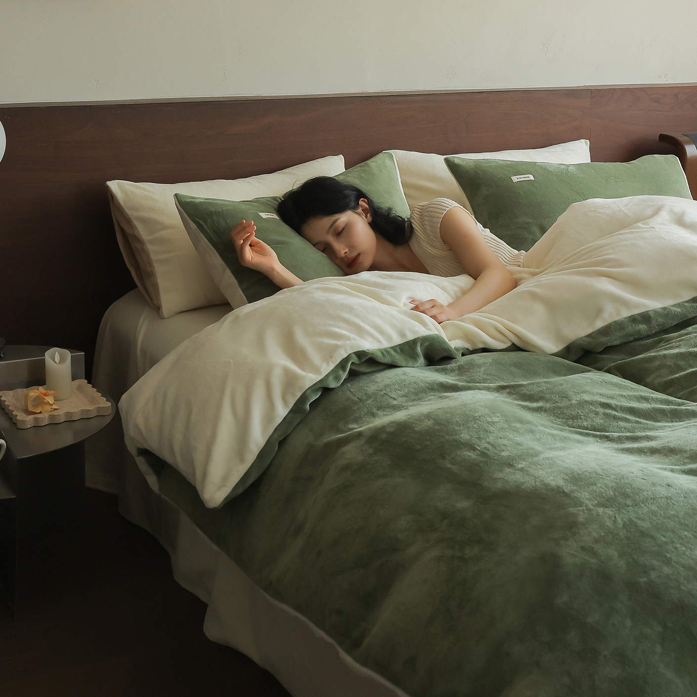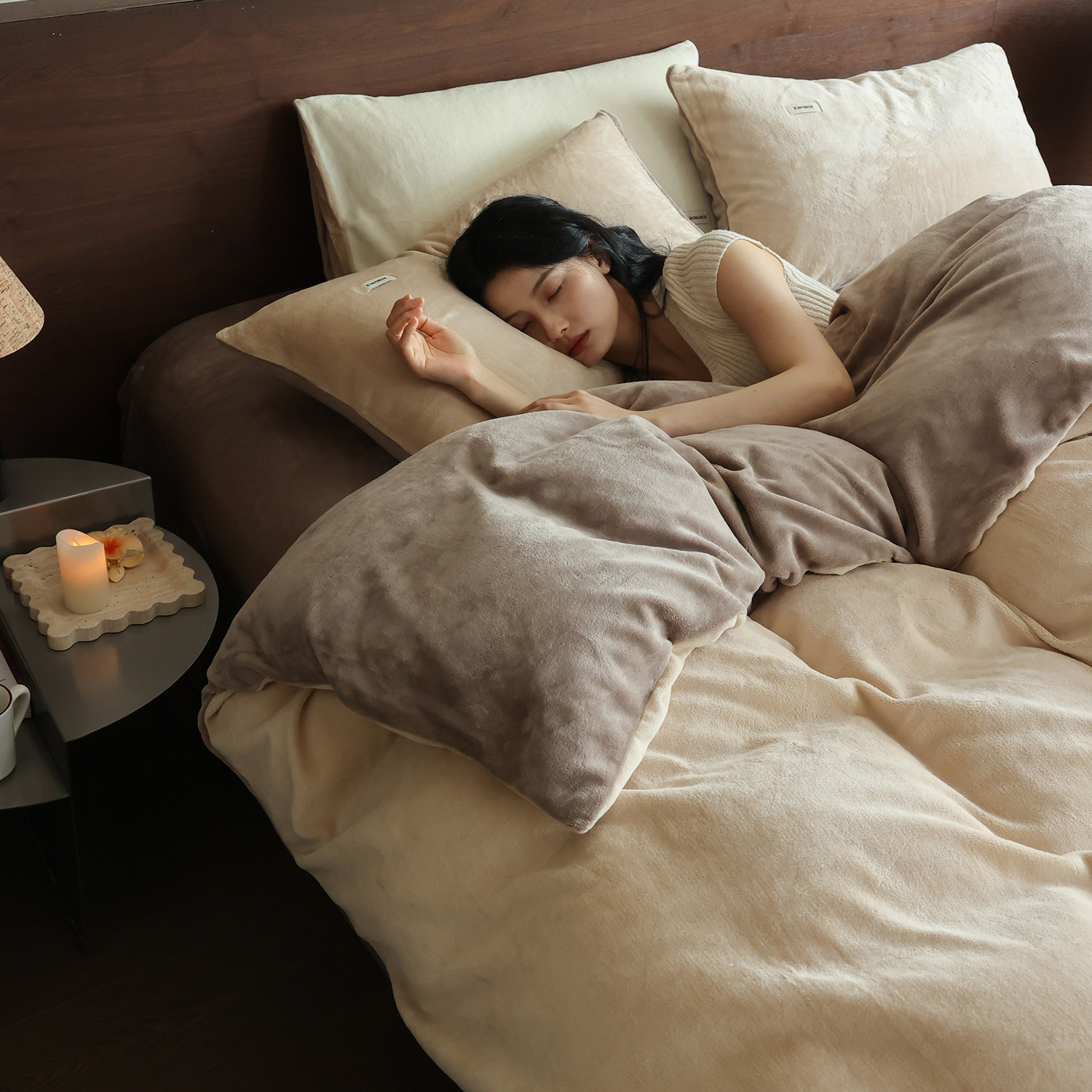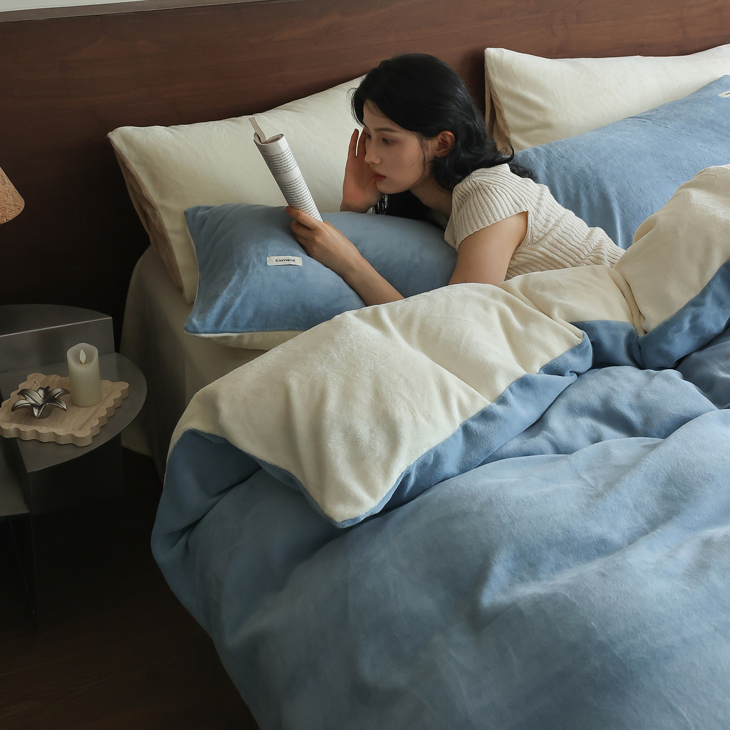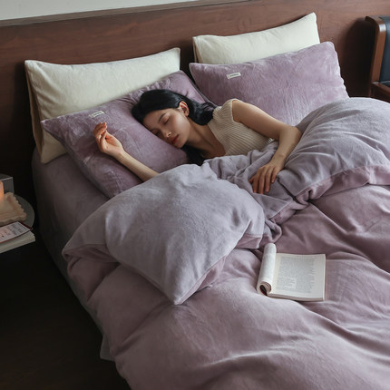 保暖加厚牛奶绒四件套 简约纯色珊瑚绒被套法拉绒床笠床单款床品