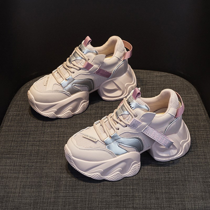 爆款真皮厚底老爹鞋女2024新款春季内增高女鞋百搭春款休闲运动鞋