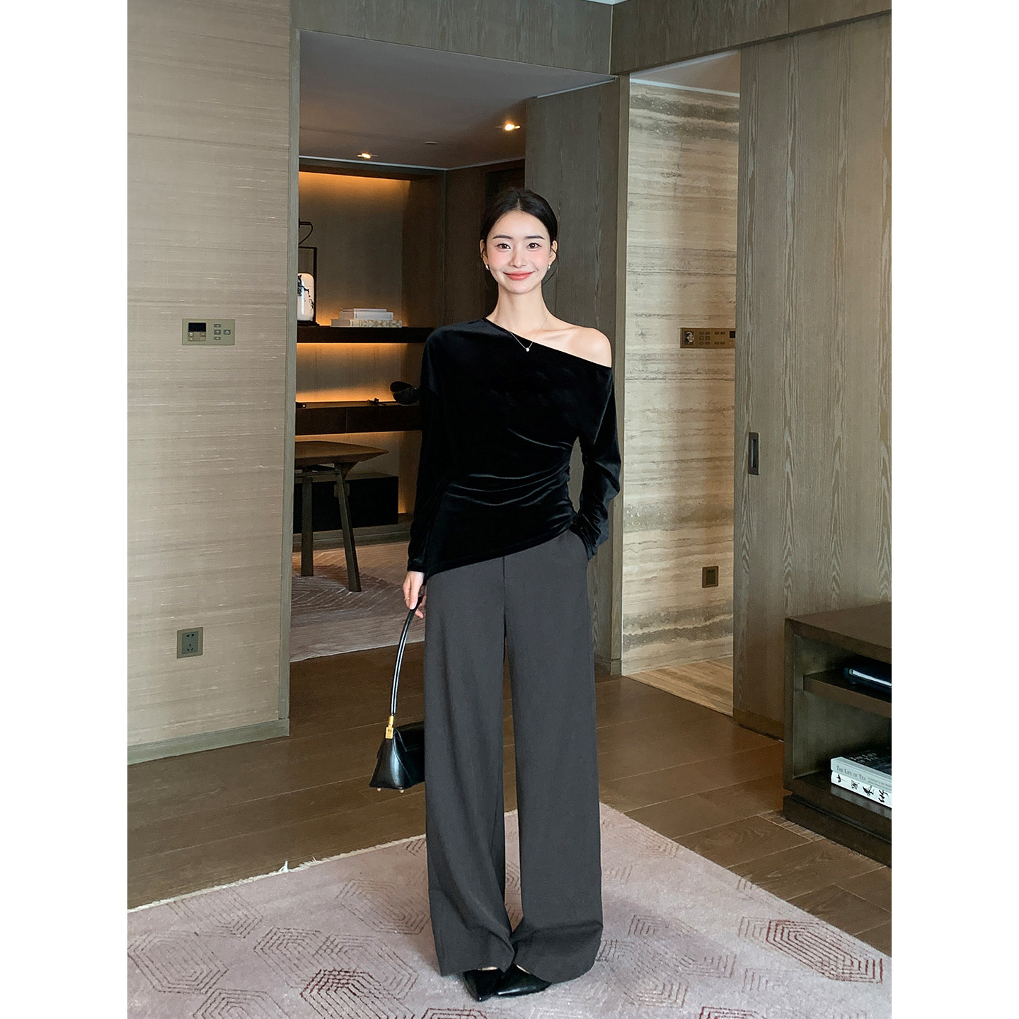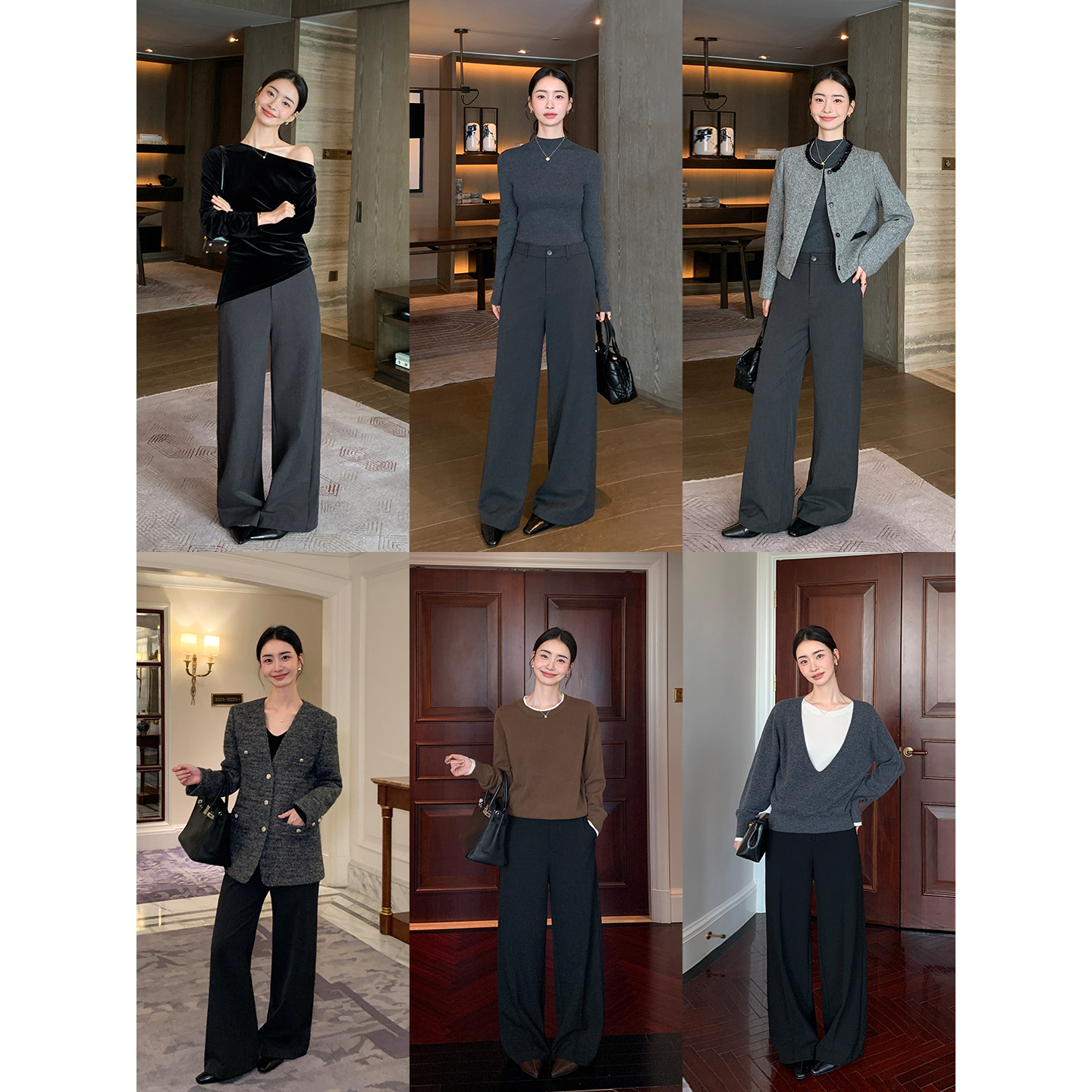 Maven Lin 高智办公室 极简宽松磨毛阔腿裤女垂感通勤西装裤