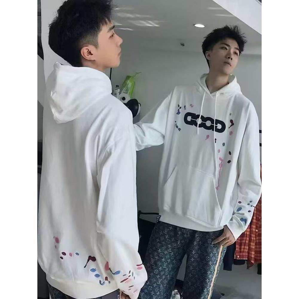纯原潮牌GOOD男女轻奢长袖潮流情侣泼墨日常套头学生连帽刺绣卫衣
